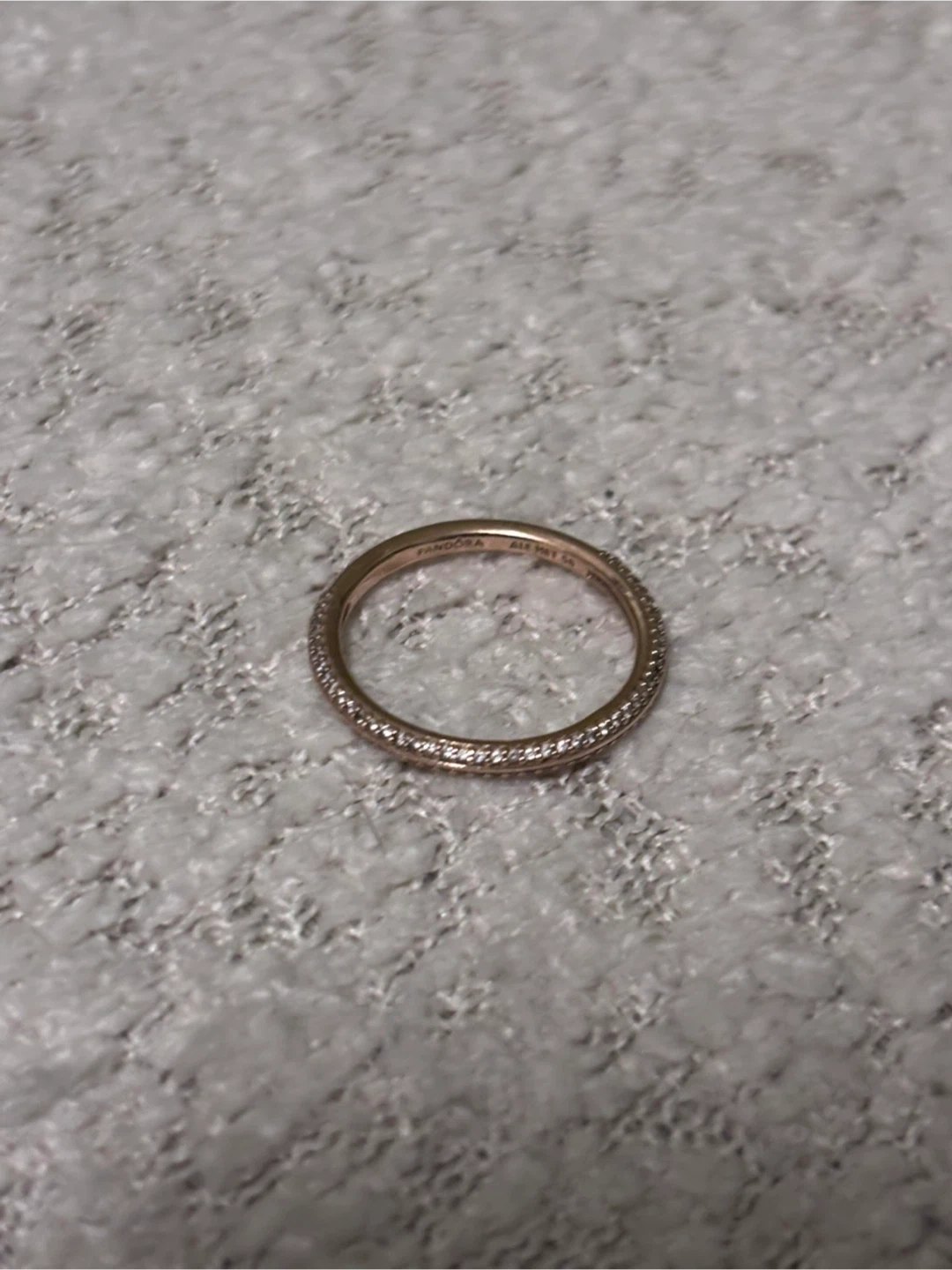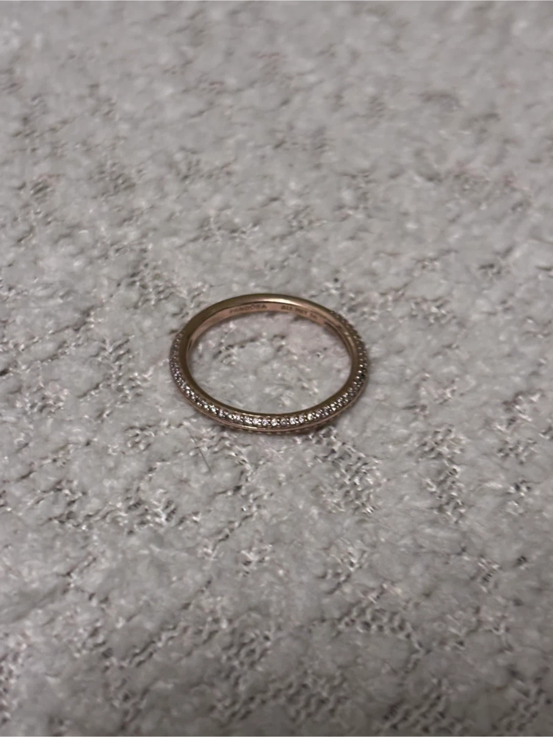 Pandora ME Pavé Ring. 14k Rose gold-plated unique metal blend. This ring has cubic zirconia stones.