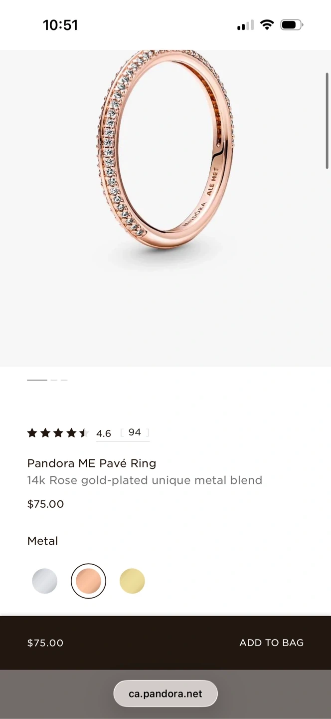 Pandora ME Pavé Ring. 14k Rose gold-plated unique metal blend. This ring has cubic zirconia stones.