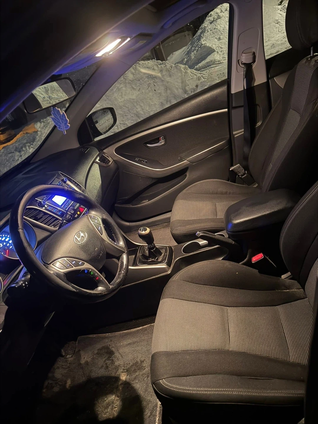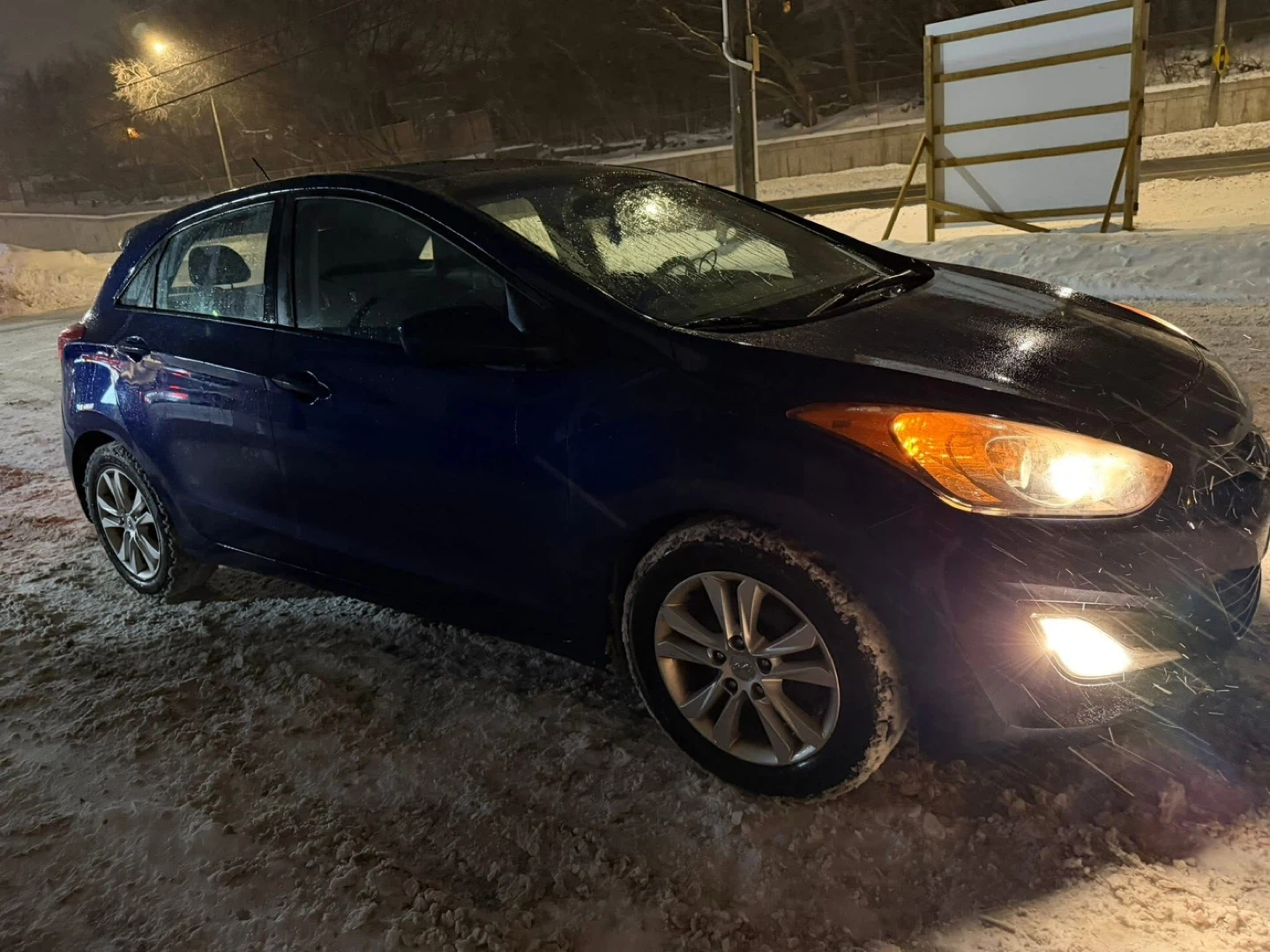 This is a blue Hyundai Elantra GT hatchback. It's equipped with comfortable cloth seats and a manual transmission. Ready for any road condition! 2013 as is