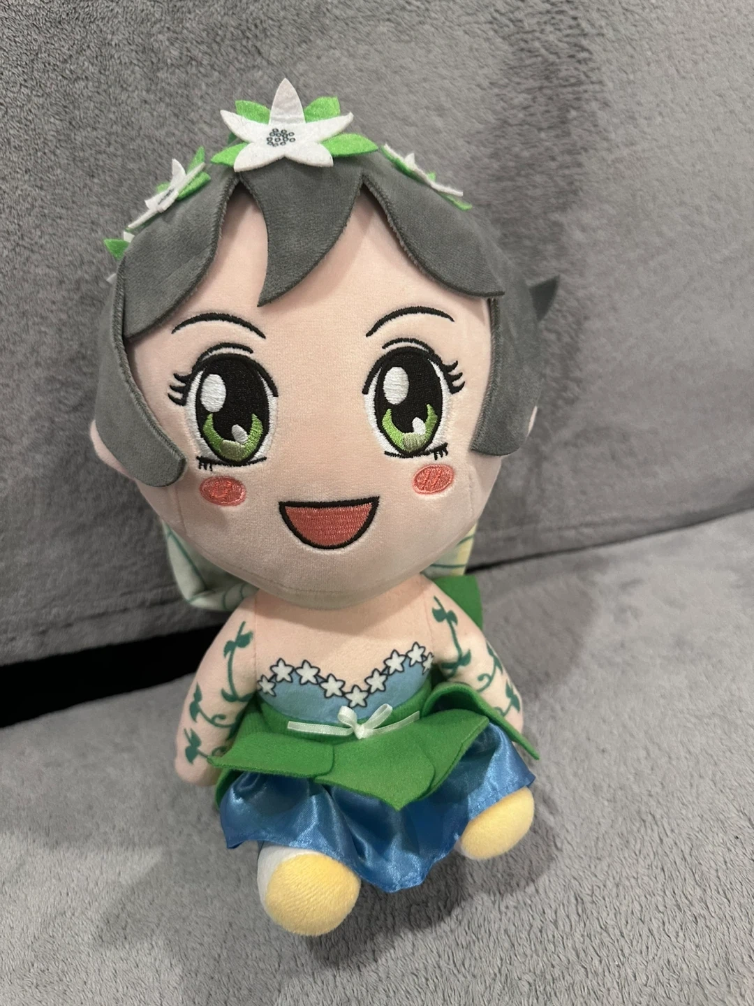 Two adorable plush toys, one dressed in a pink cat outfit with ears and a bow, and the other as a fairy with green floral accents. Both have large, expressive eyes and soft, cuddly materials. They're perfect for collectors or as a fun gift! Very clean in good condition smoke and pets free.