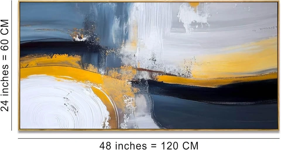 Modern colorful graffiti abstract canvas wall art in navy blue and gold. Picture print painting for living room, bedroom, home office. Ready to hang, size 24x48.