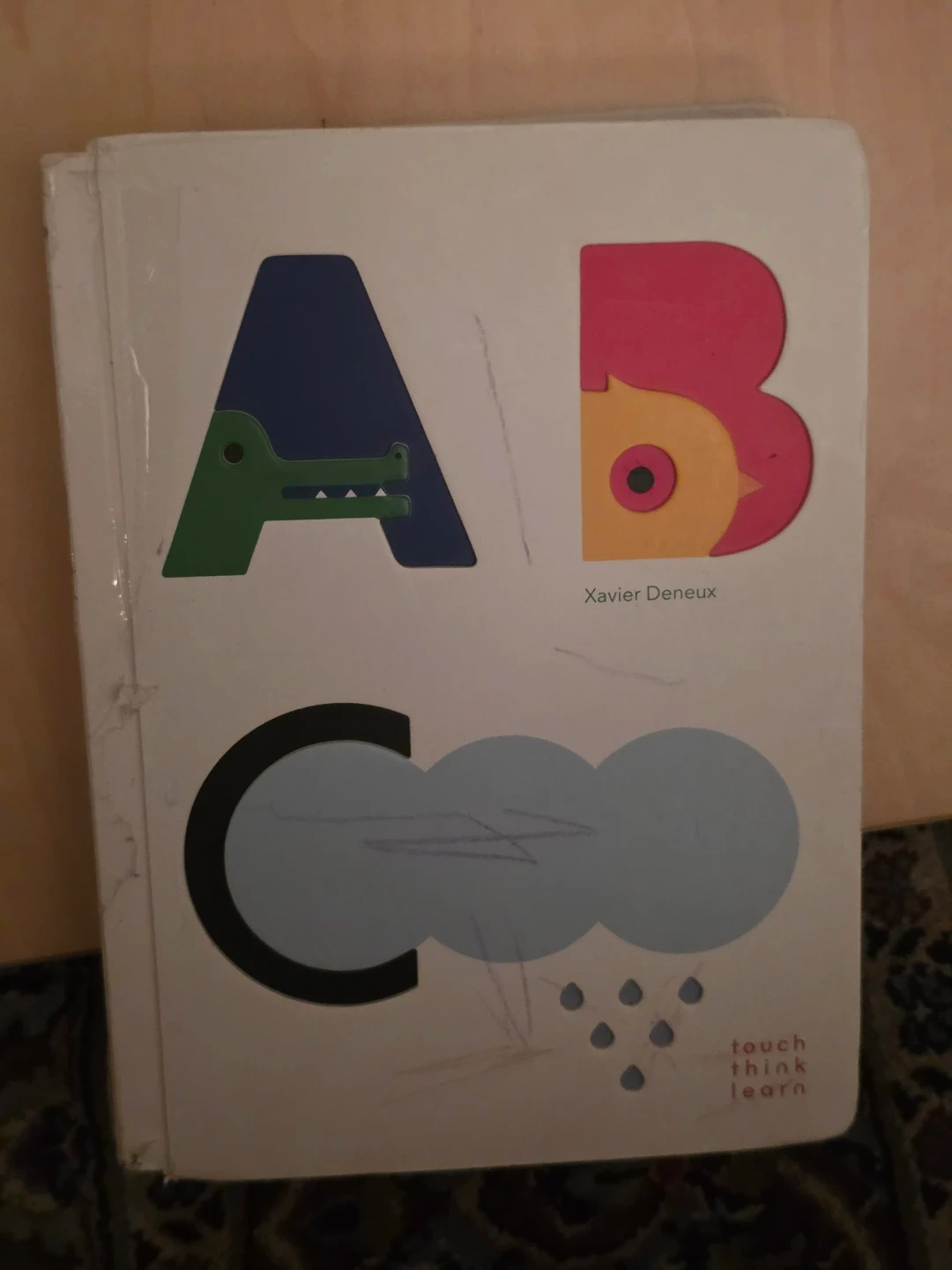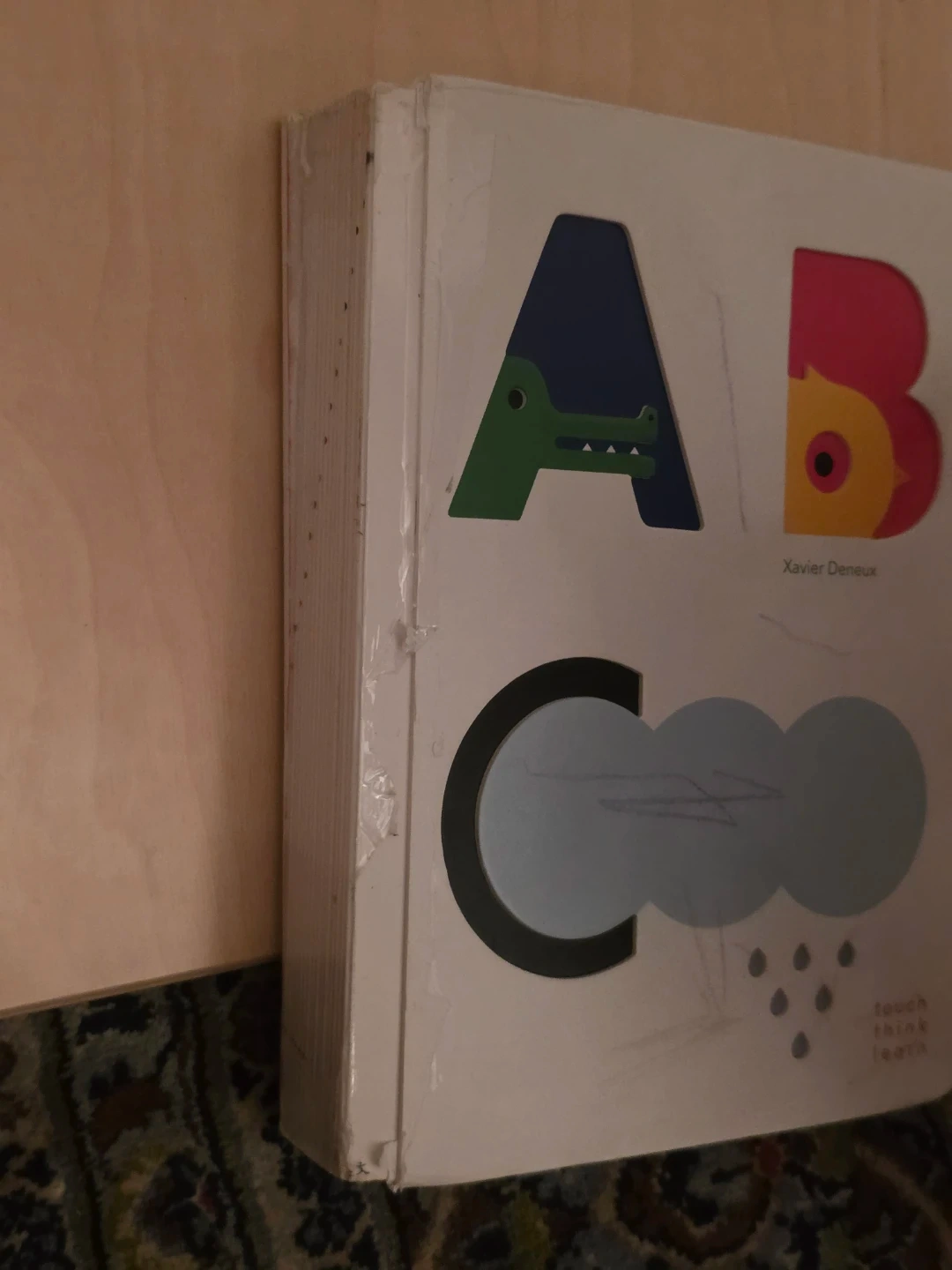 This is the Touch Think Learn ABC book by Xavier Deneux. It features colourful, tactile pages designed to engage young minds. The book explores letters with interactive elements.