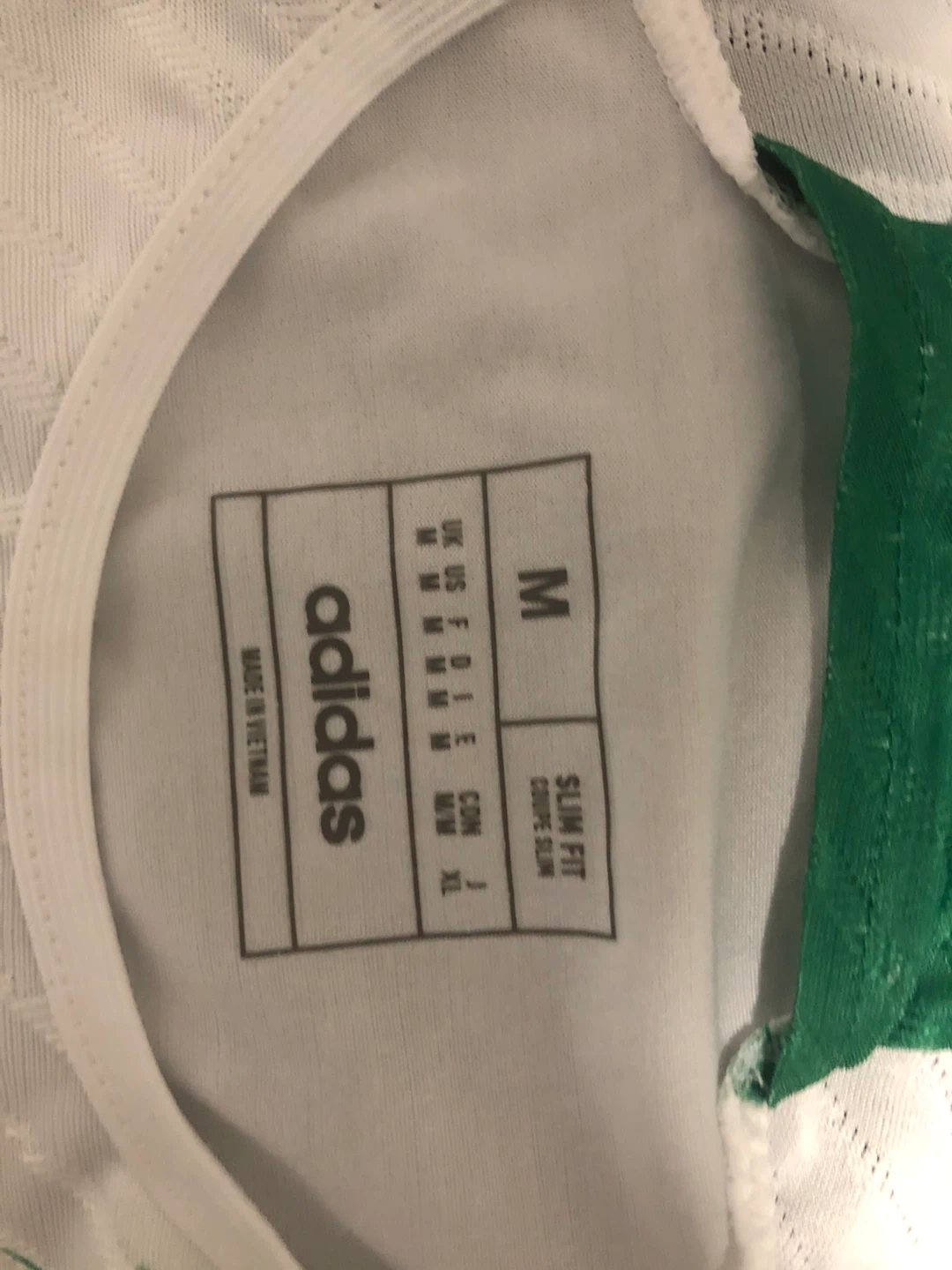 This is an Adidas soccer jersey for the Algeria national team. It's a size medium with a slim fit. The material is lightweight and breathable, perfect for playing or cheering. Price is negotiable