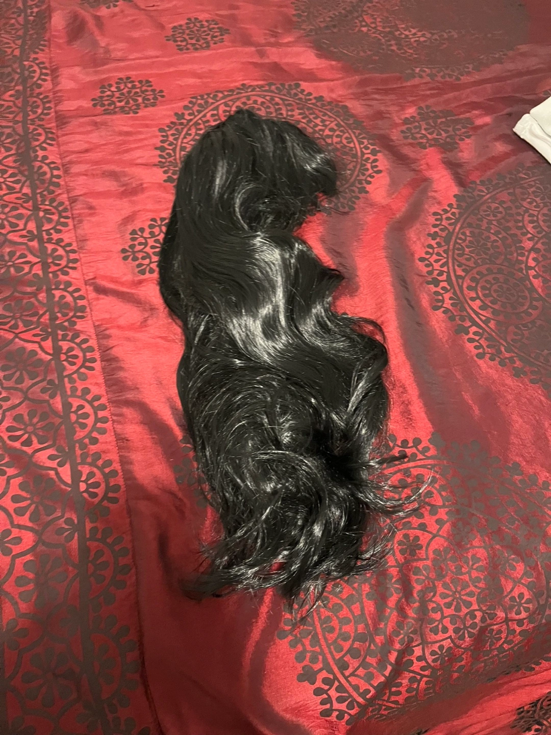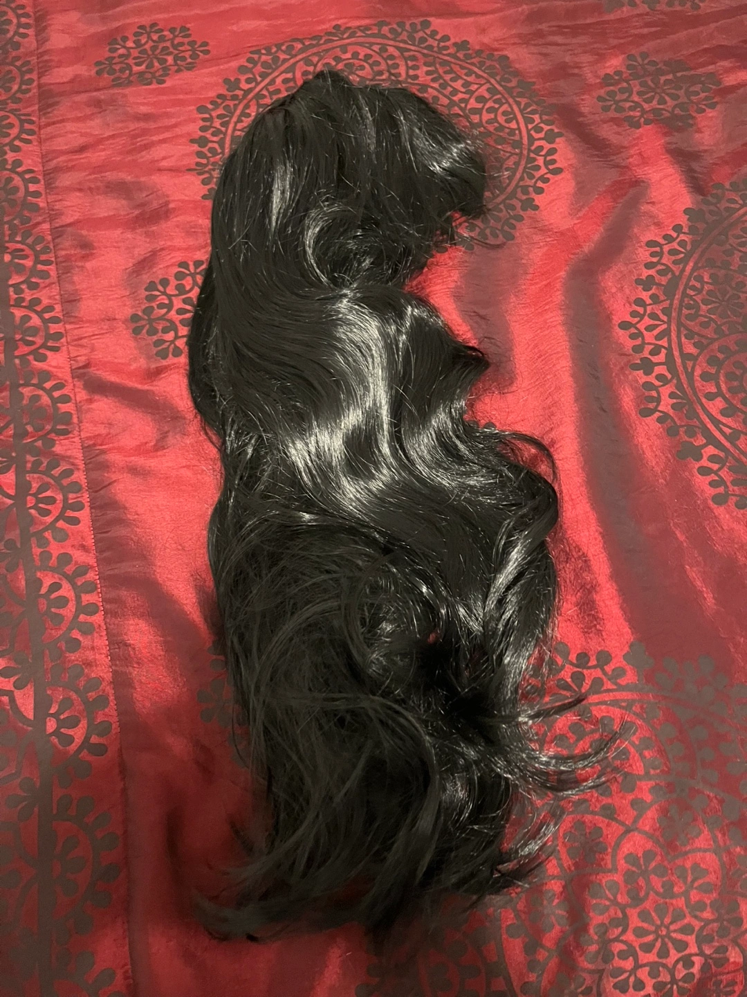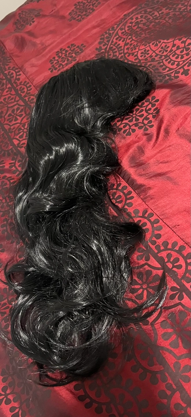 Brand new black wavy synthetic wig with full bangs/fringe. Long length with soft S-waves — super flattering and easy to wear. Never worn