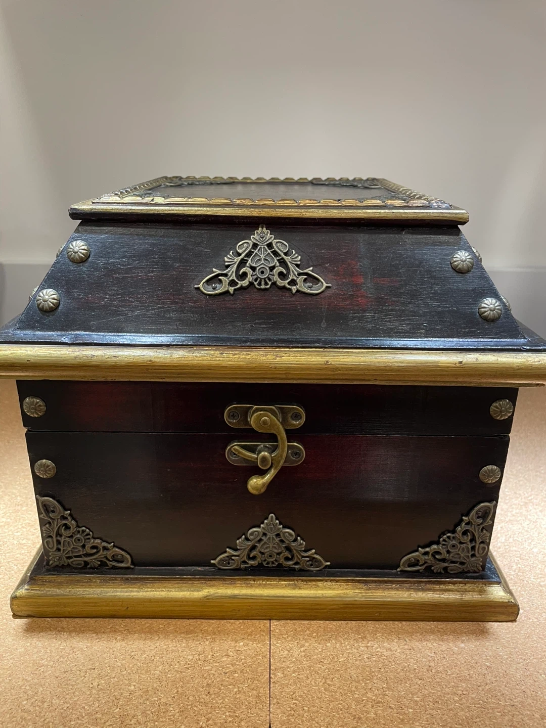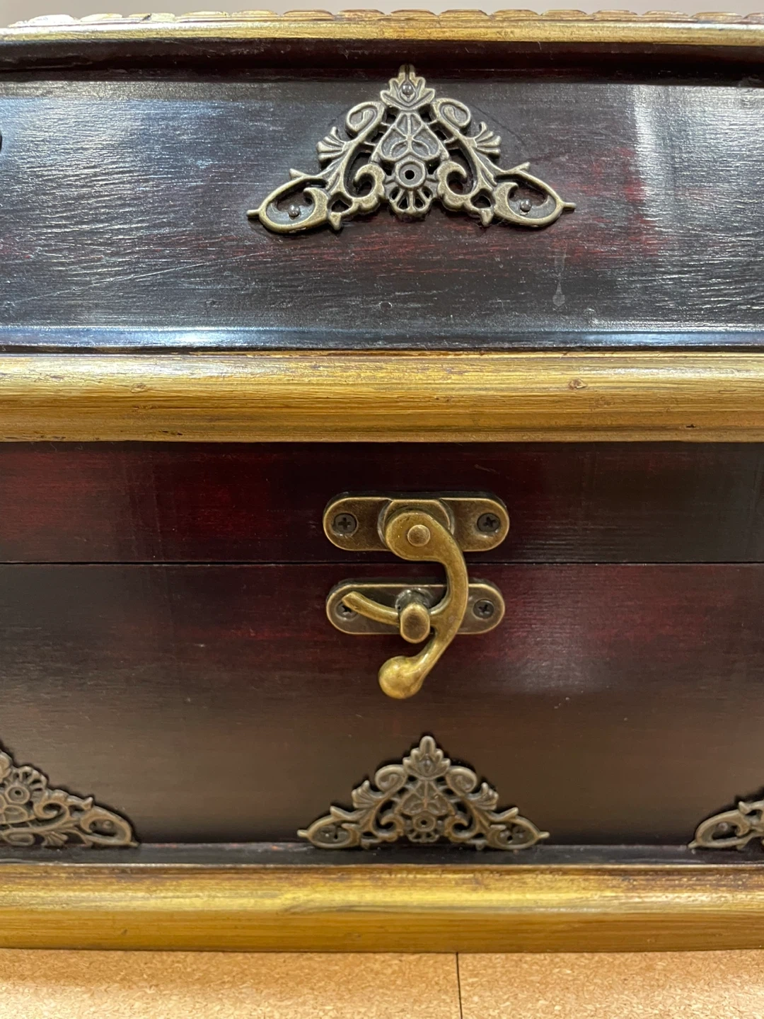 Decorative Wooden Trinket Box with Ornate Metal Accents