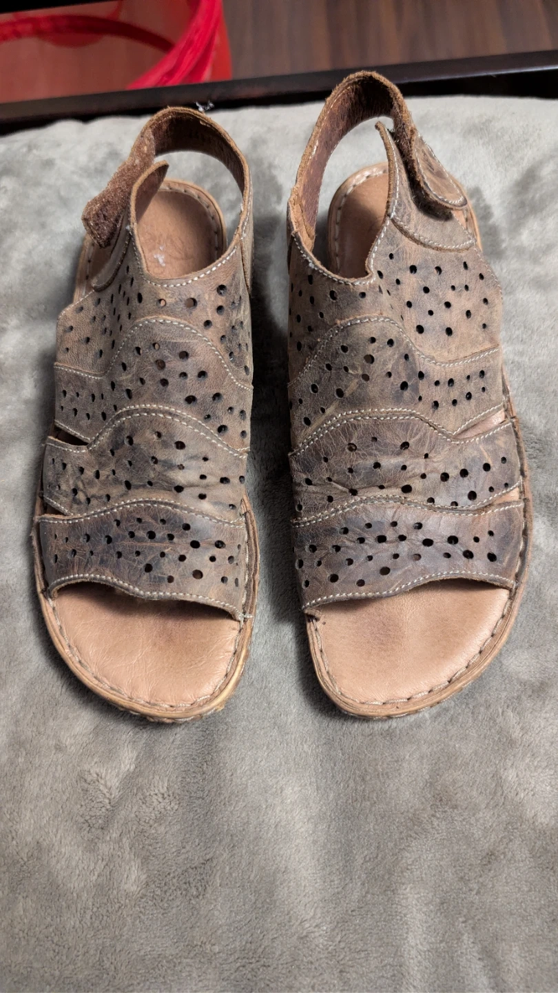 These Josef Seibel sandals are made from distressed brown leather. Comfortable leather lining and footbed. These sandals are great for everyday wear during warmer months!