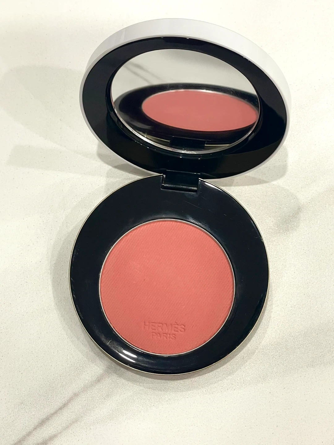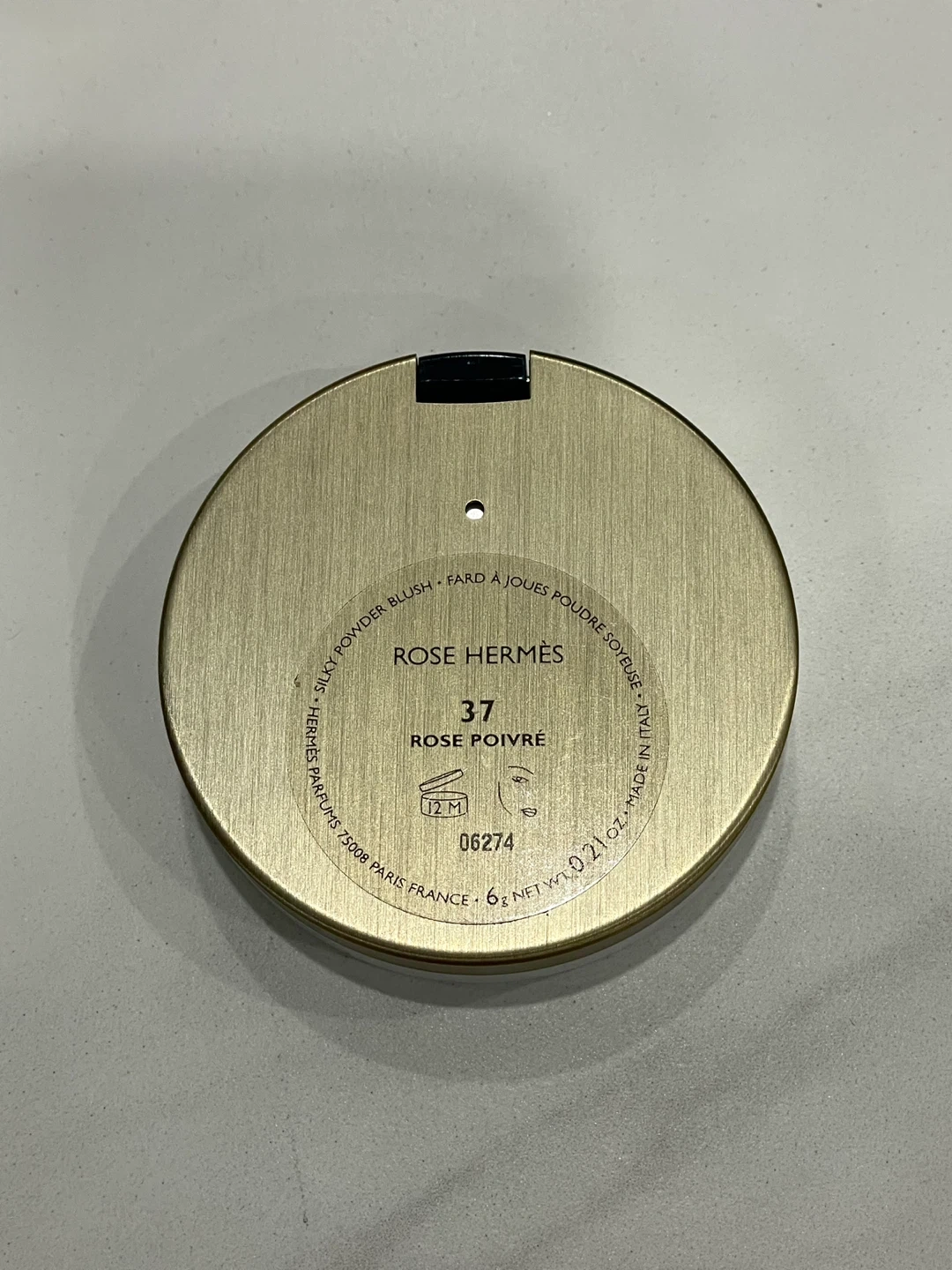 This is a HERMÈS blush in shade 37, Rose Poiré. It's a silky powder blush with a matte finish. The compact includes a mirror and has a net weight of 0.21 oz.