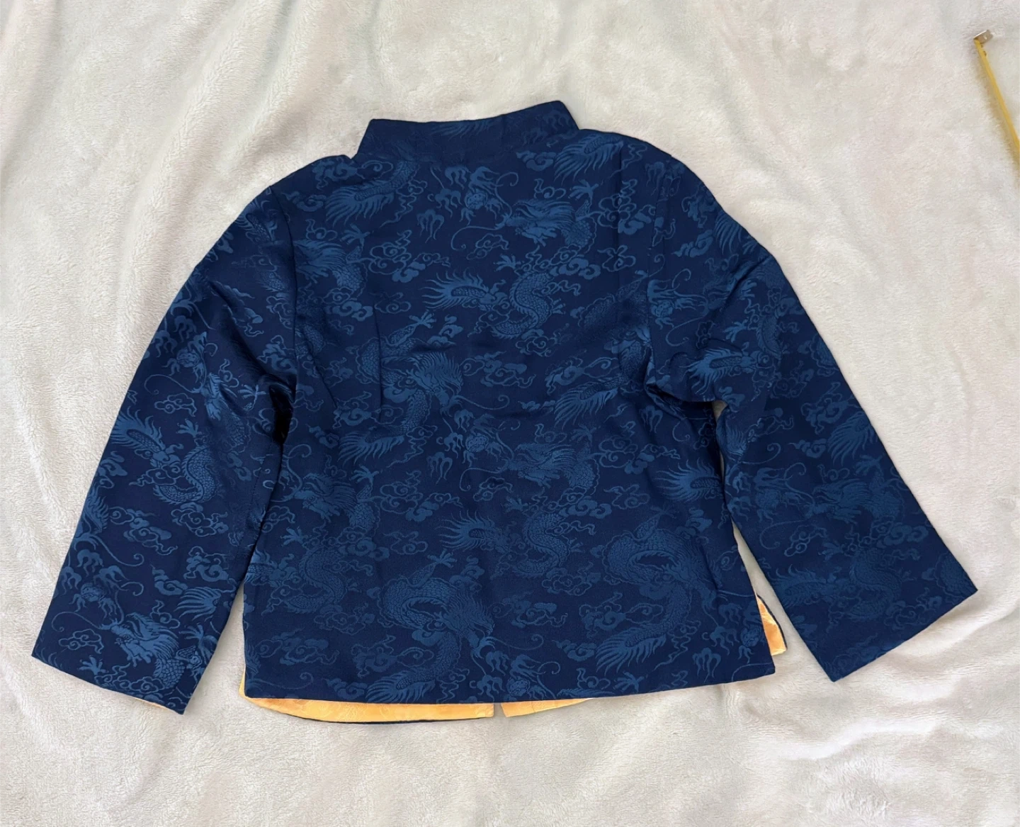 Chinese Dragon Brocade Jacket - Reversible Blue/Yellow