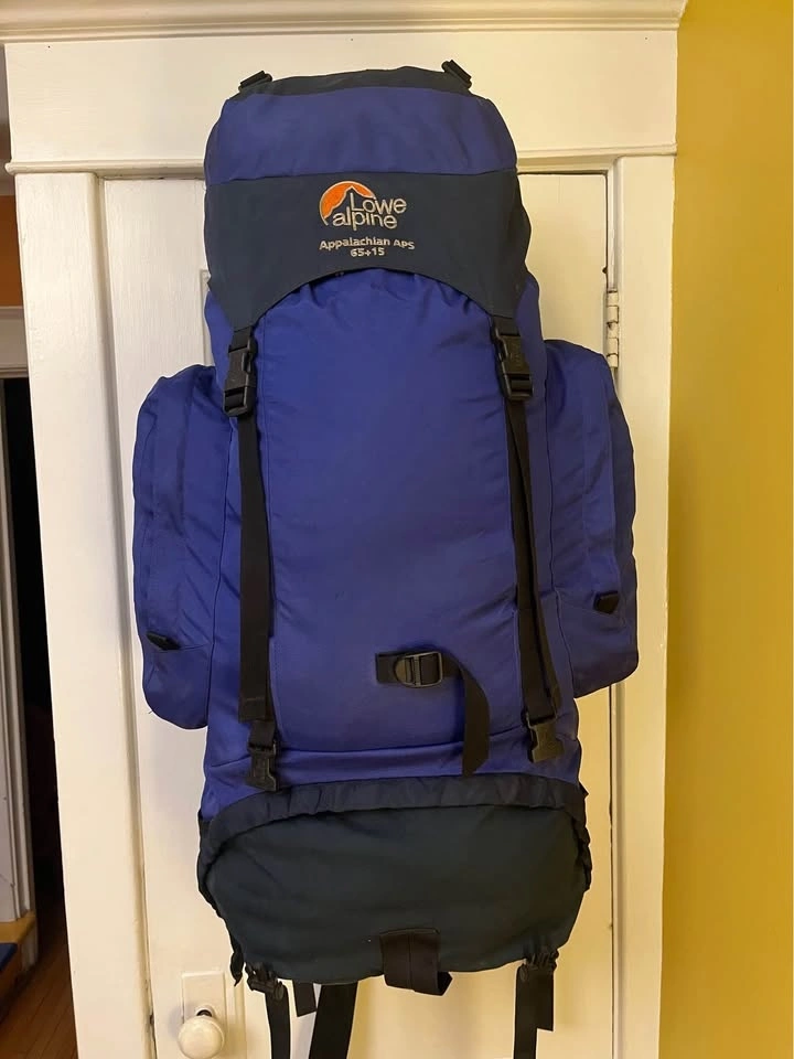 Originally purchased in the UK, this high-quality backpack was only used on two short trips. It has remained in storage since then. The Appalachian APS 65+15 has been discontinued, but remains a popular backpack for urban, front-country, and back-country hikers. Like all Lowe Alpine bags, this one is lightweight, sturdy, durable, water resistant, and easy and comfortable to carry. It comes with an adjustable internal frame, padded shoulder straps, padded back and waist straps, two large internal compartments (65 L + 15 L of storage), compression straps, two expandable side compartments, and an easy-access compartment on the rain cover. All zippers, straps, and buckles are in perfect working condition. Brand new Lowe Alpine backpacks of a similar size and style typically cost between $250 and $370 CAD.