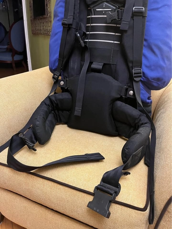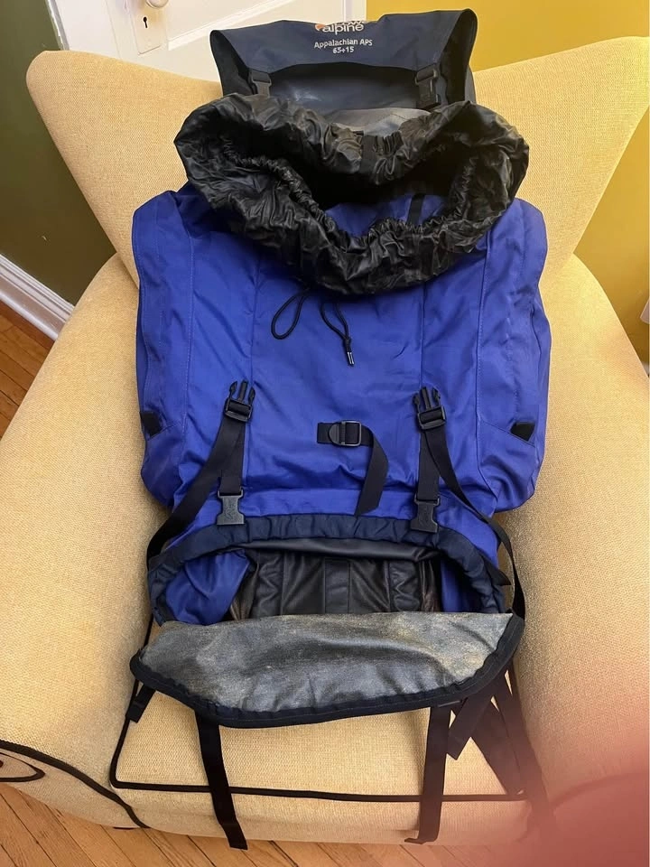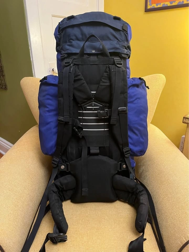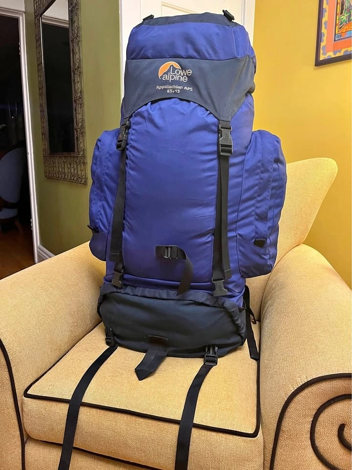 Originally purchased in the UK, this high-quality backpack was only used on two short trips. It has remained in storage since then. The Appalachian APS 65+15 has been discontinued, but remains a popular backpack for urban, front-country, and back-country hikers. Like all Lowe Alpine bags, this one is lightweight, sturdy, durable, water resistant, and easy and comfortable to carry. It comes with an adjustable internal frame, padded shoulder straps, padded back and waist straps, two large internal compartments (65 L + 15 L of storage), compression straps, two expandable side compartments, and an easy-access compartment on the rain cover. All zippers, straps, and buckles are in perfect working condition. Brand new Lowe Alpine backpacks of a similar size and style typically cost between $250 and $370 CAD.