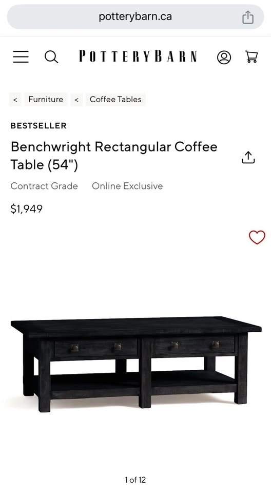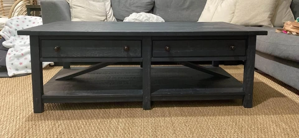 Just moved and this coffee table is too big for our new place. It's still in like-new condition. Dimensions: 54" wide x 26" deep x 18" high.