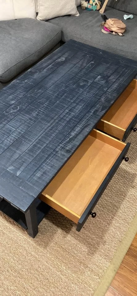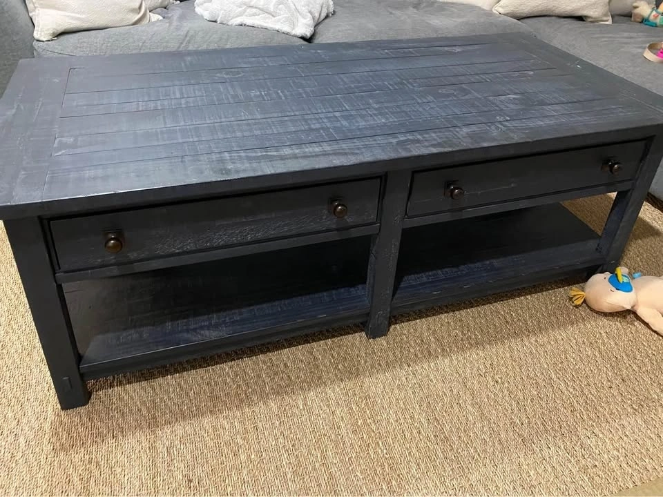 Just moved and this coffee table is too big for our new place. It's still in like-new condition. Dimensions: 54" wide x 26" deep x 18" high.