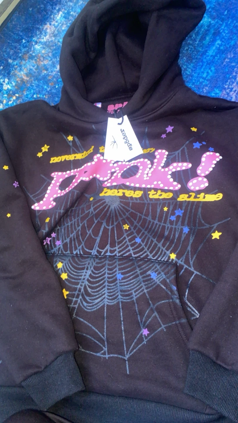 Black Sp5der hoodie with "nevermind the spider" graphic. Size small. Made with premium materials for comfort and durability.