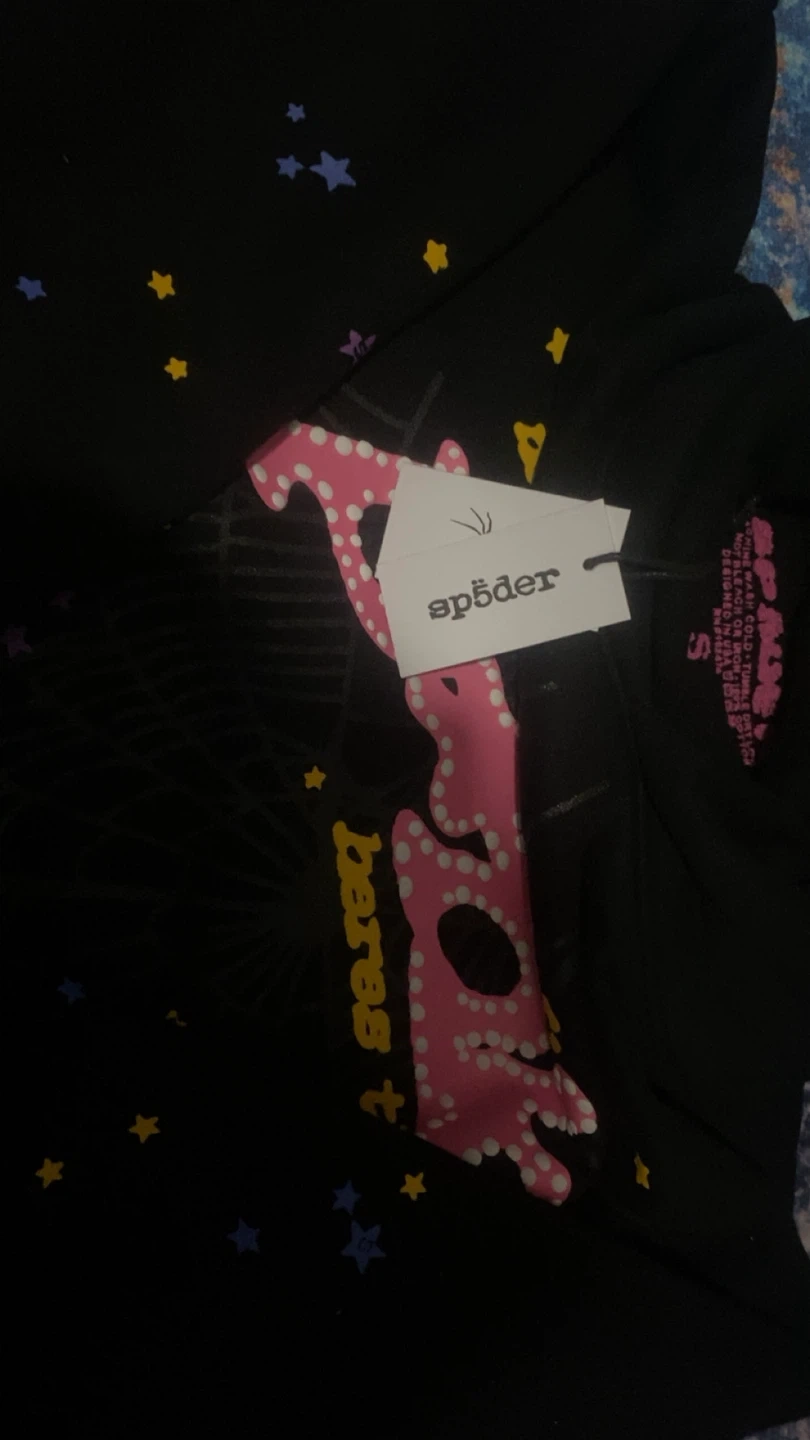 Black Sp5der hoodie with "nevermind the spider" graphic. Size small. Made with premium materials for comfort and durability.