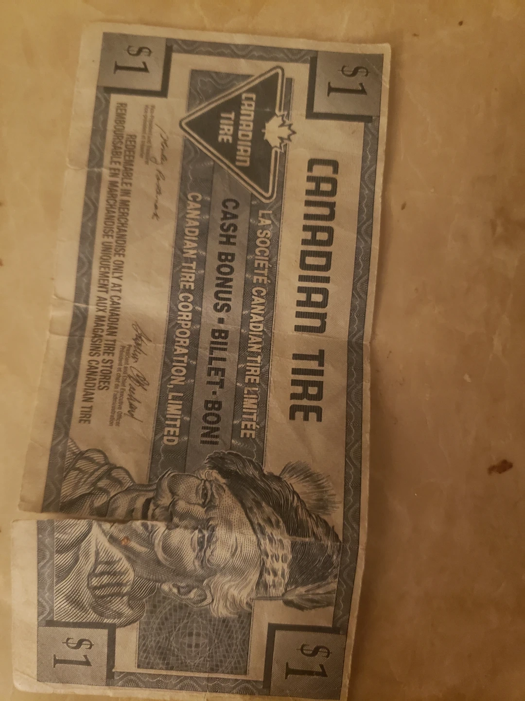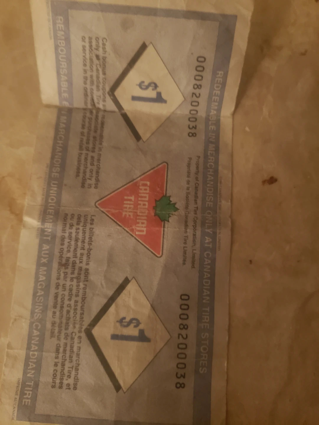 One Canadian Tire $1 cash bonus coupons are available. These are redeemable in merchandise only at Canadian Tire stores. Property of Canadian Tire Corporation, Limited.