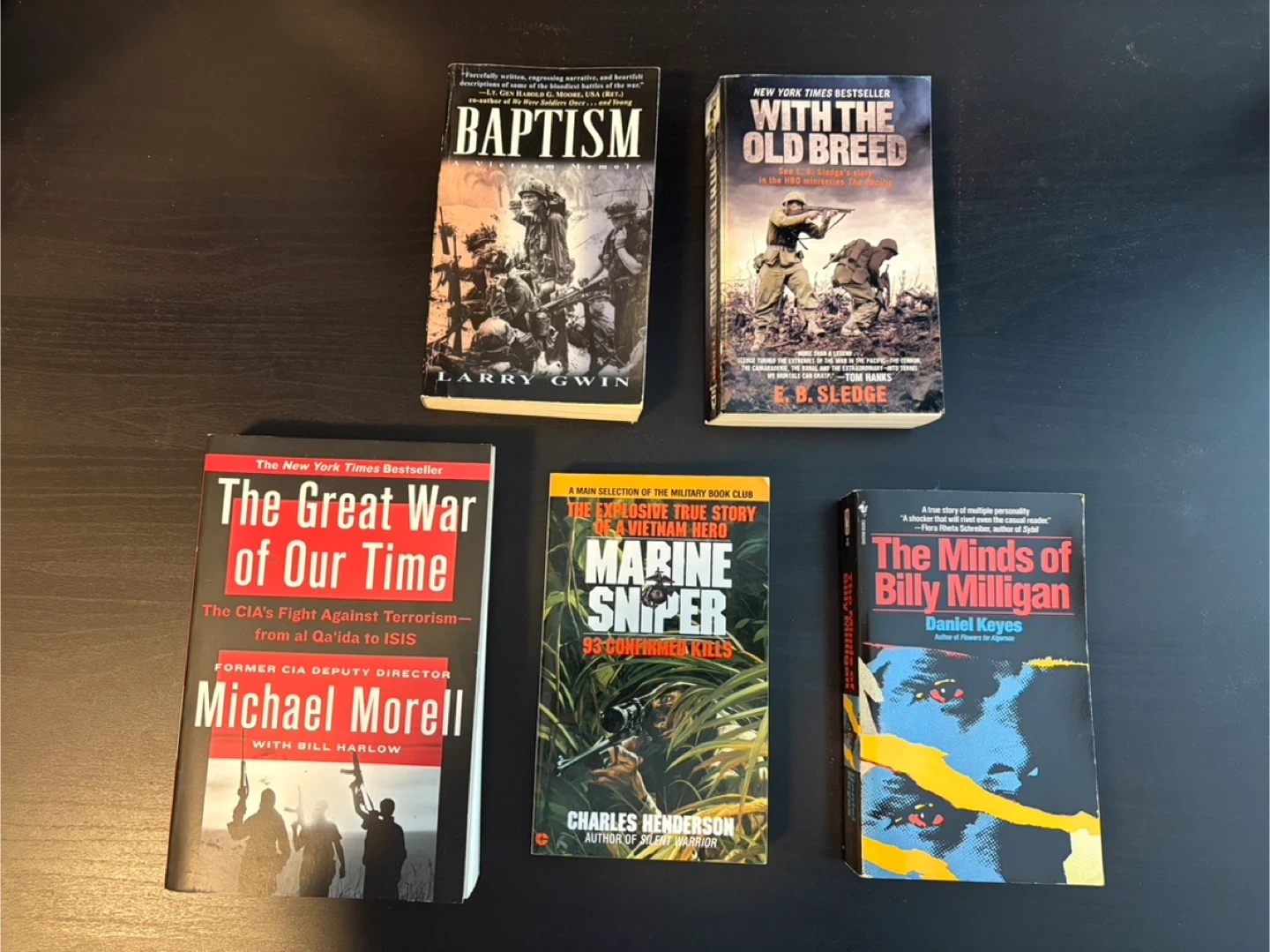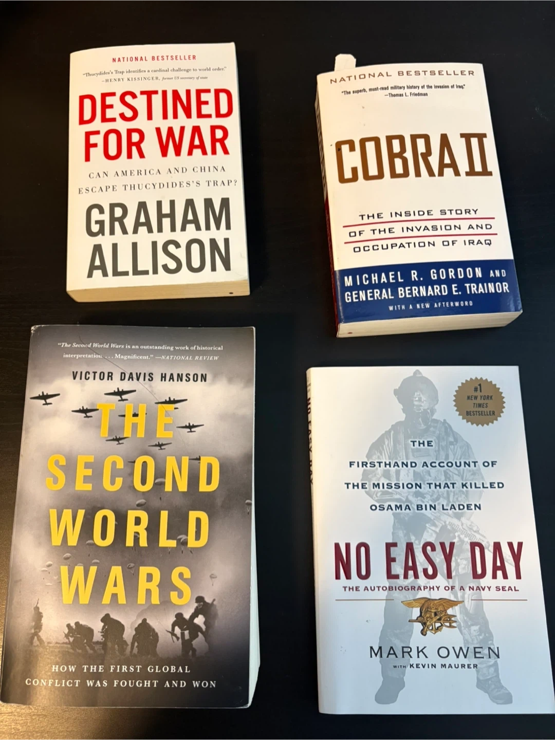 Collection of non-fiction and business books, including titles on leadership, history, and personal finance. These books offer insights into various subjects. Great for expanding your knowledge!