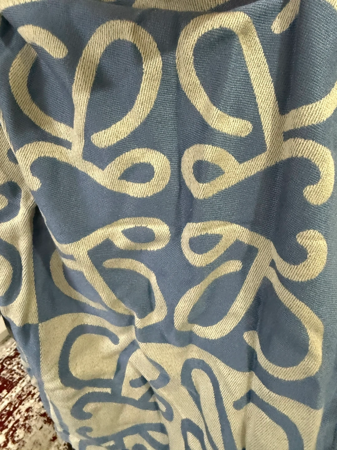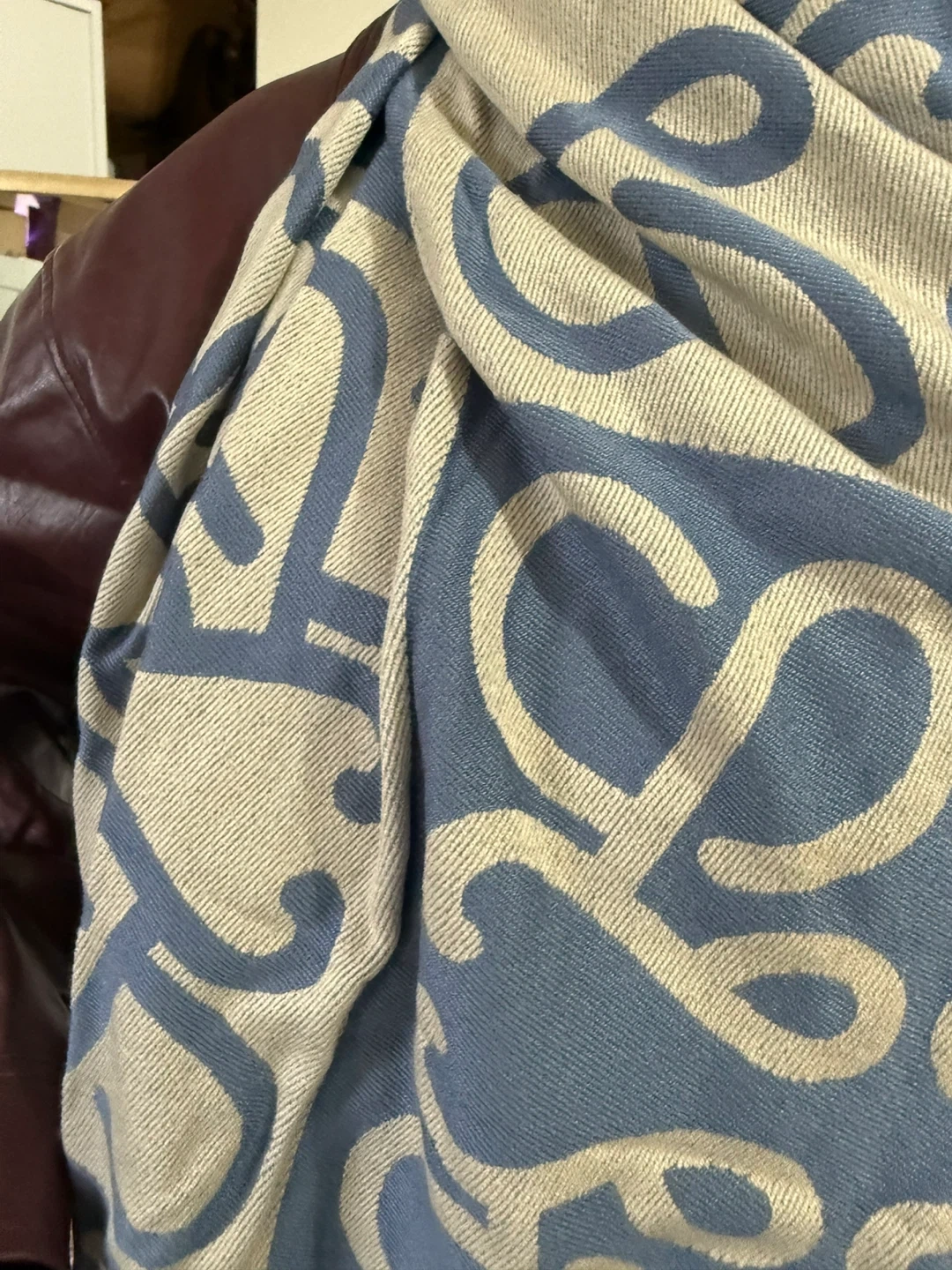 Blue and Cream Patterned Scarf
