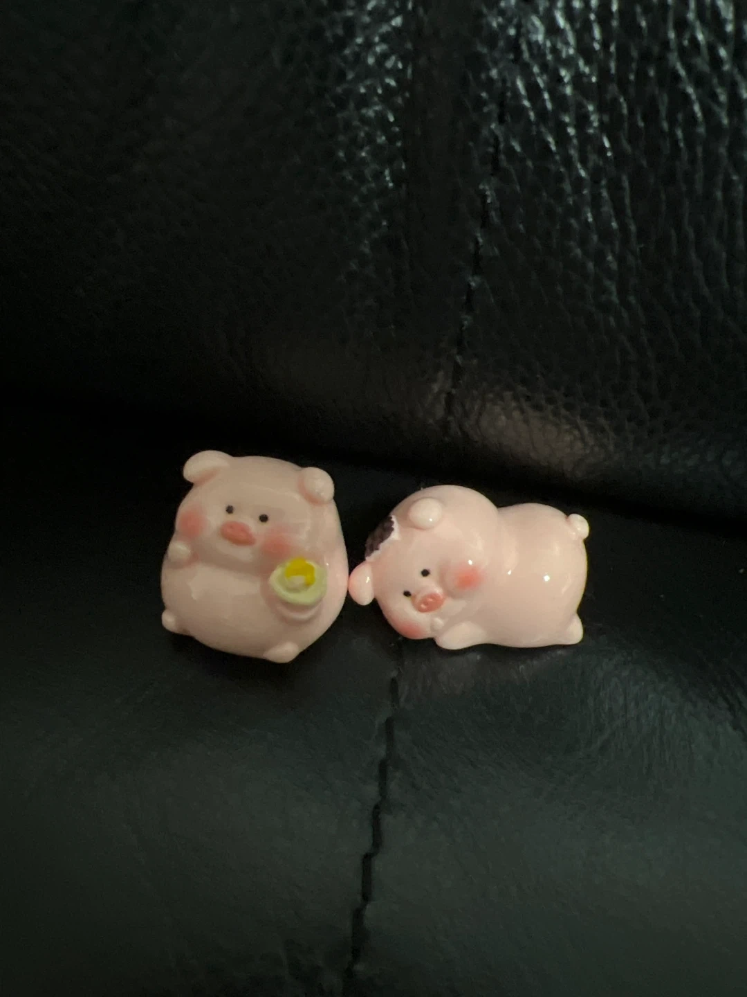 Two adorable pink piggy figurines are shown. They are in original packaging boxes, featuring cute designs. These collectible toys are great for display or gifting!