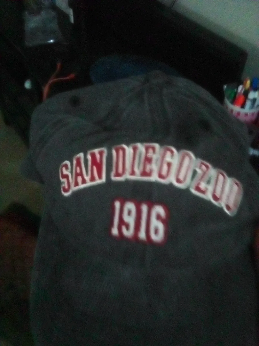 This is a San Diego Zoo baseball cap with '1916' embroidered on the front. The inside band features repeating San Diego Zoo branding. One size fits most.