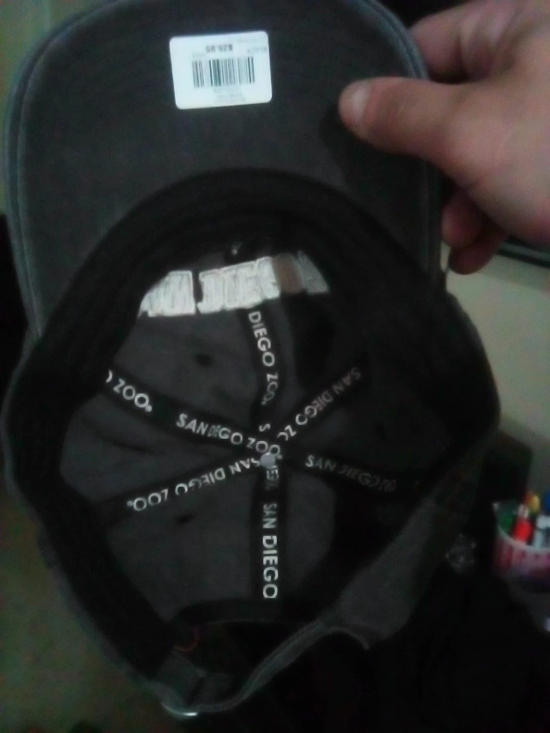 This is a San Diego Zoo baseball cap with '1916' embroidered on the front. The inside band features repeating San Diego Zoo branding. One size fits most.