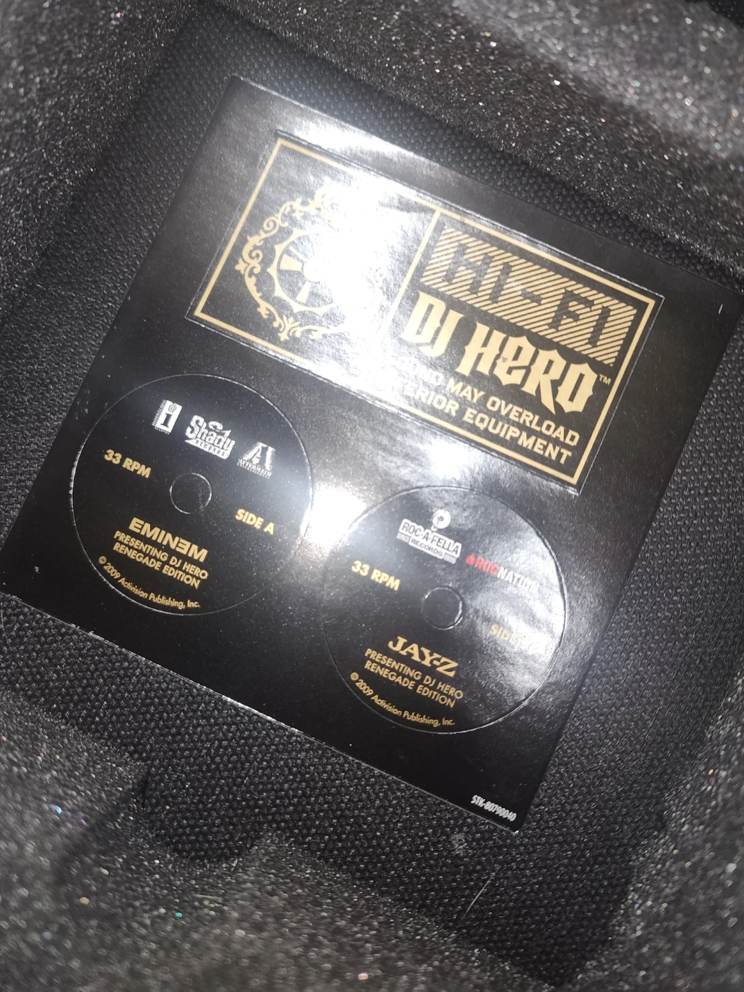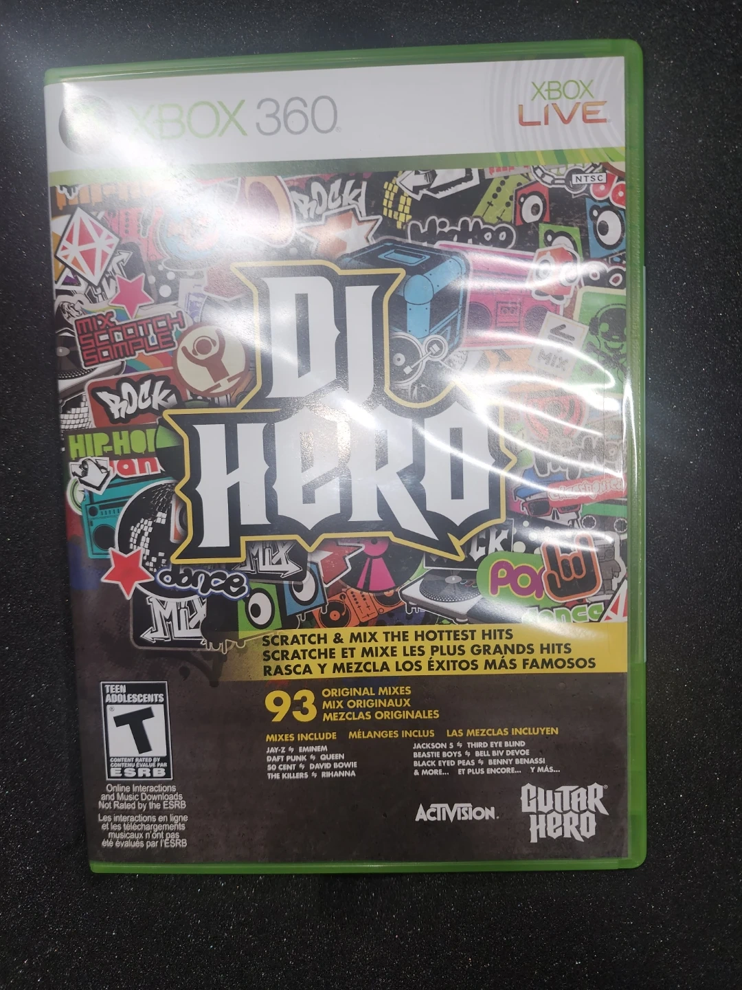 This bundle includes the DJ Hero Renegade Edition game for Xbox 360. It features an exclusive Jay-Z and Eminem 2-CD pack, a renegade turntable controller, and a DJ stand carrying case. It's compatible with Xbox Live.