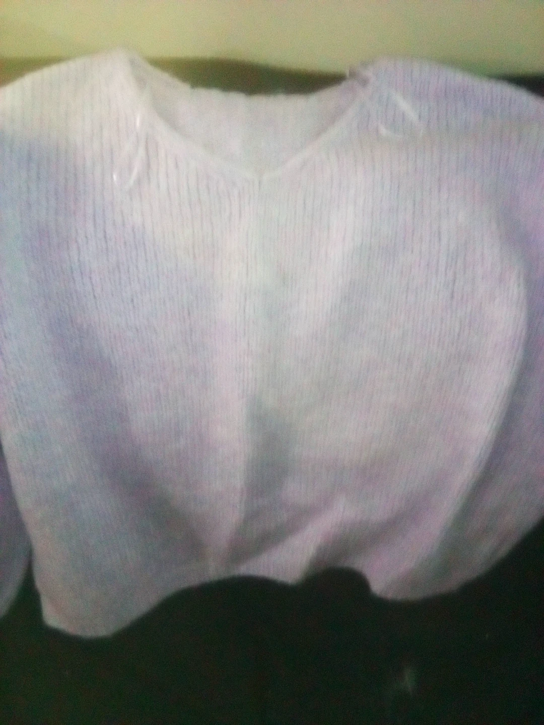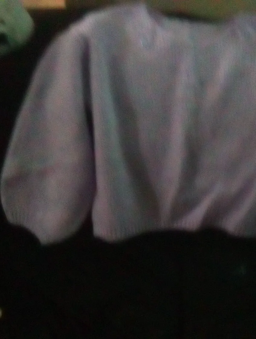 This is a women's light purple v-neck sweater. It's made of a soft knit material. Its cropped style makes it great for layering!