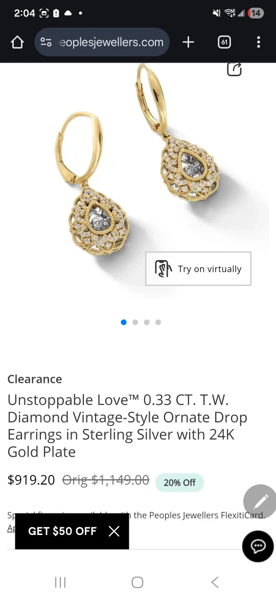 Vintage-style ornate drop earrings featuring approximately 0.33 CT. T.W. diamonds. Crafted in sterling silver with a 24K gold plate. Lever-back closure for secure wear. These earrings are suitable for special occasions or adding a touch of vintage elegance to any outfit.