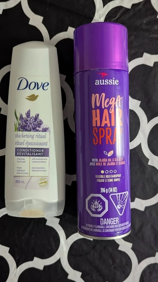 Dove Thickening Ritual Conditioner – 355mL - Brand new, never used. Infused with lavender & rosemary extract. For fine, flat hair – adds volume & softness. Price: $8 CAD
