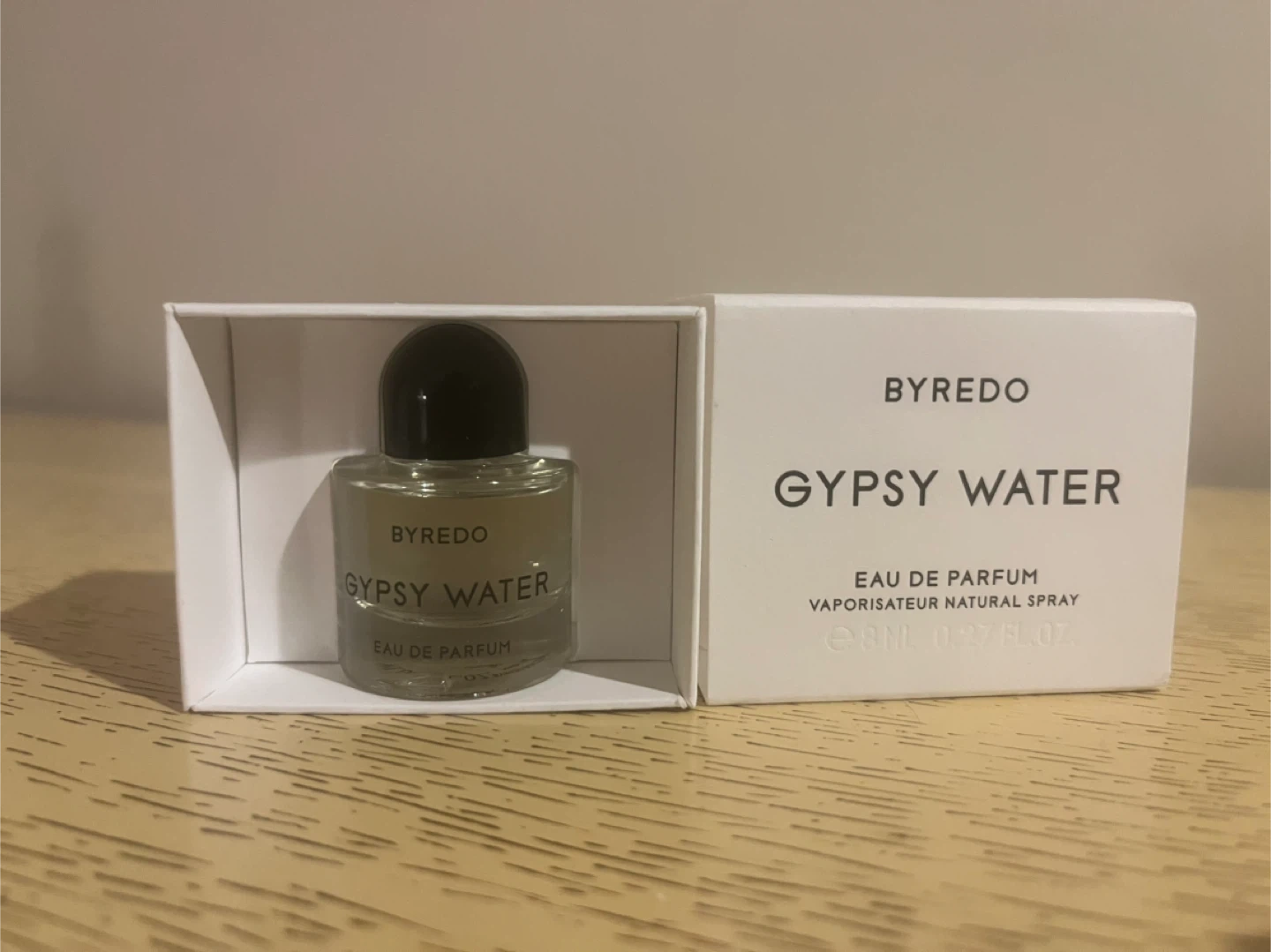 This is a BYREDO Gypsy Water Eau de Parfum. It's an 8ML bottle, which is 0.27 FL.OZ. This fragrance is great for travel!