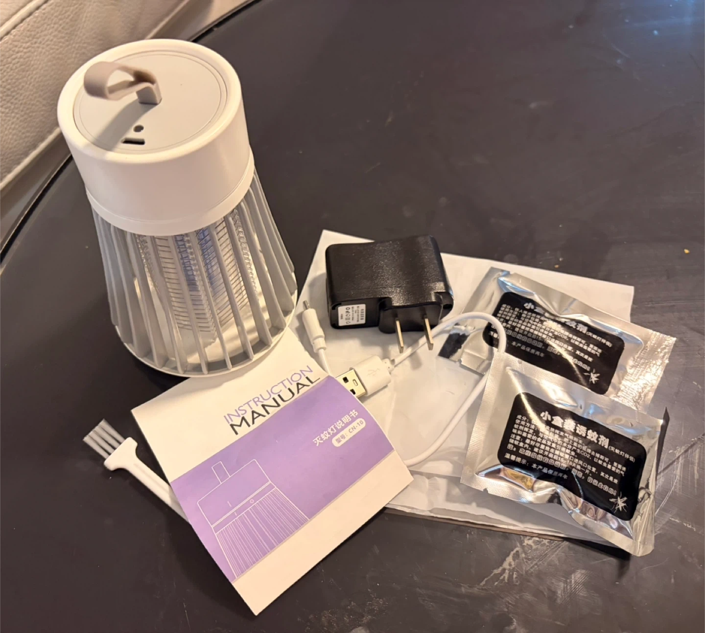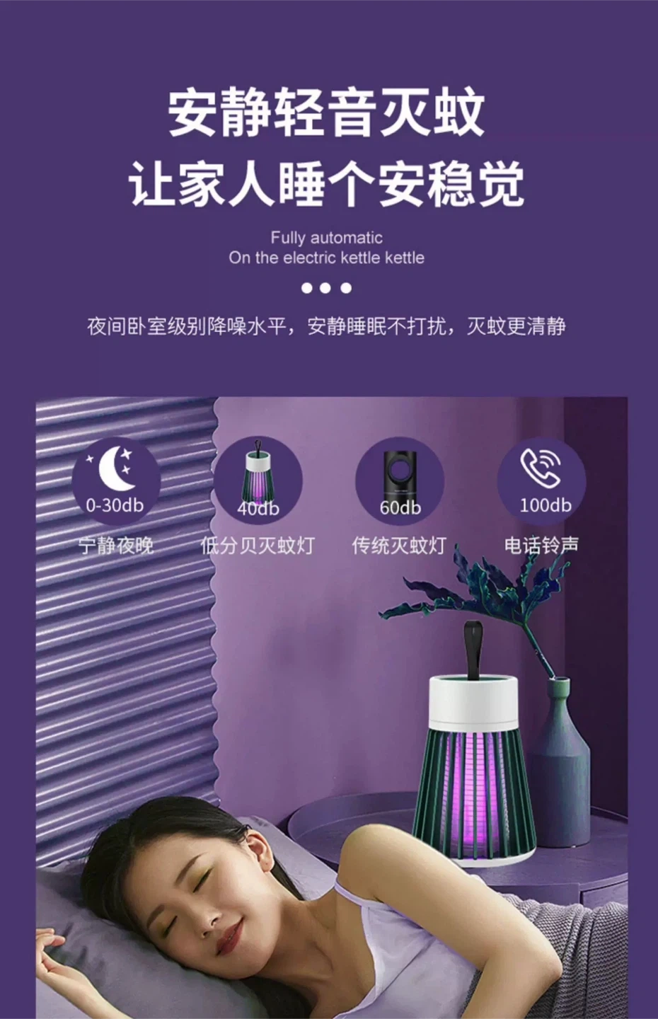 This mosquito lamp uses UV light to attract and trap mosquitos. It's USB powered and includes a cleaning brush and two mosquito attractant refills. Effective and quiet operation for a peaceful night's sleep.
