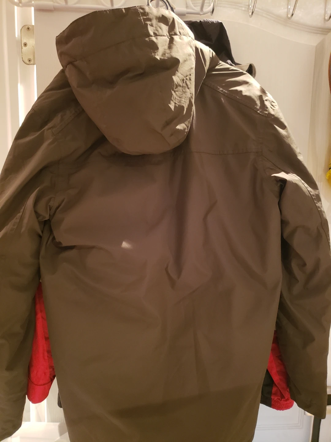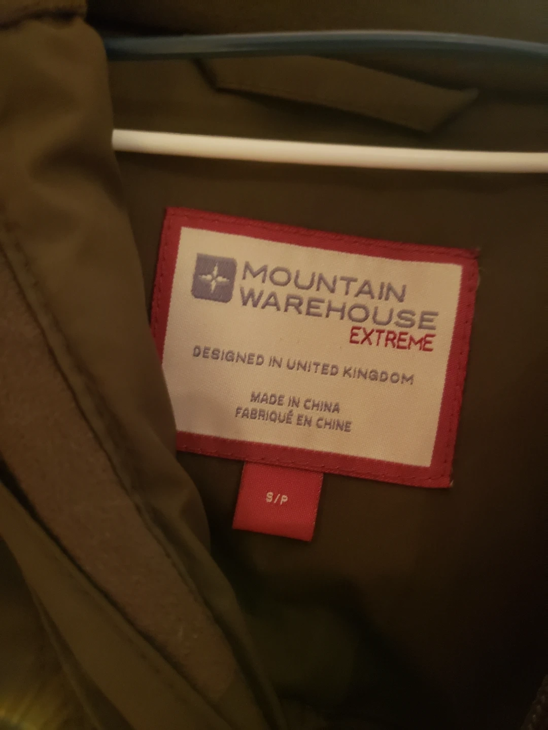 This is a Mountain Warehouse Extreme winter jacket. It's a size S/P and comes in a dark olive green colour. Features multiple pockets for storage..only cash 💸