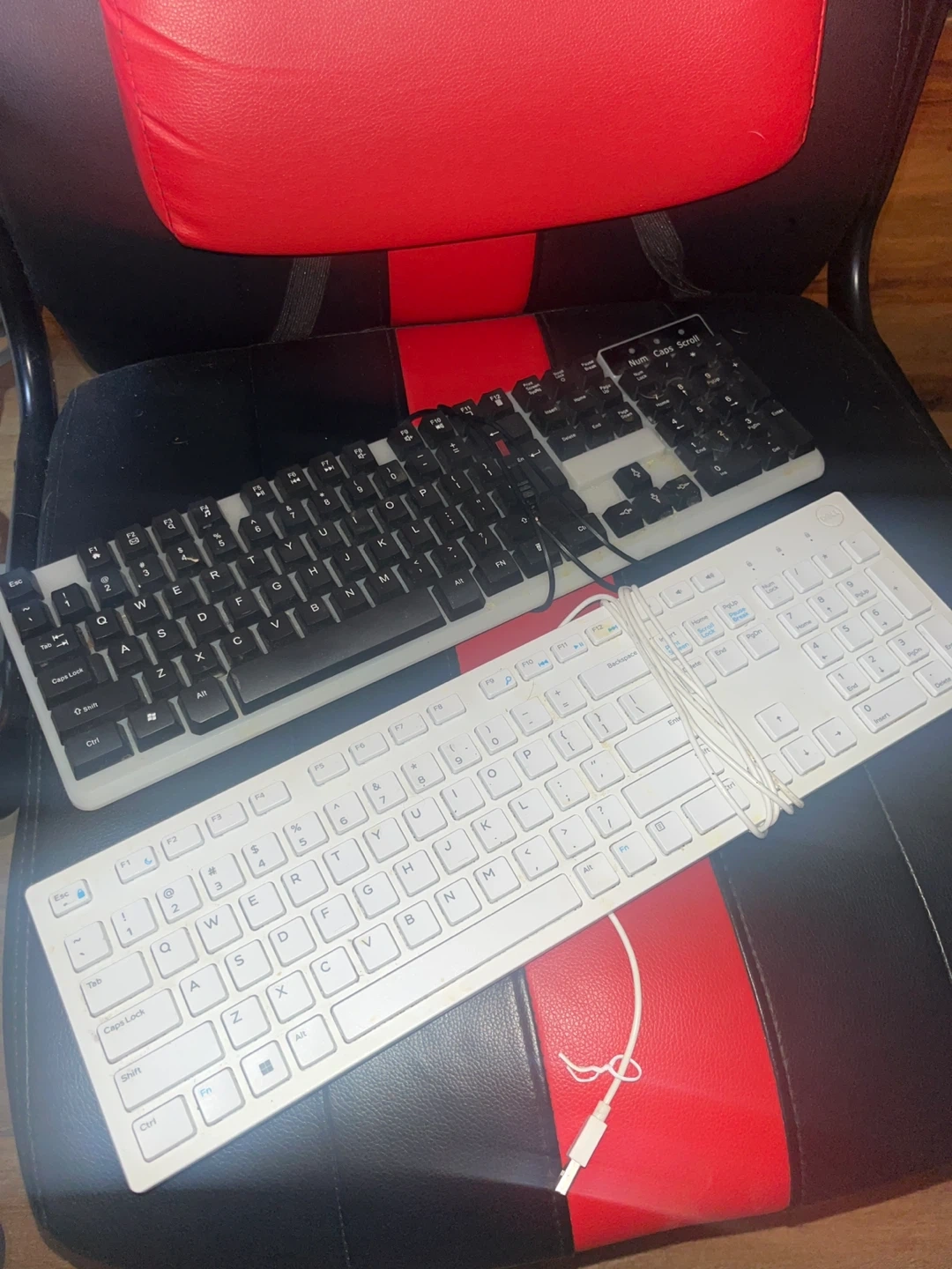 Two wired keyboards, one white and one black. Both appear to be standard QWERTY layouts. These are great for a home office setup or as spares.