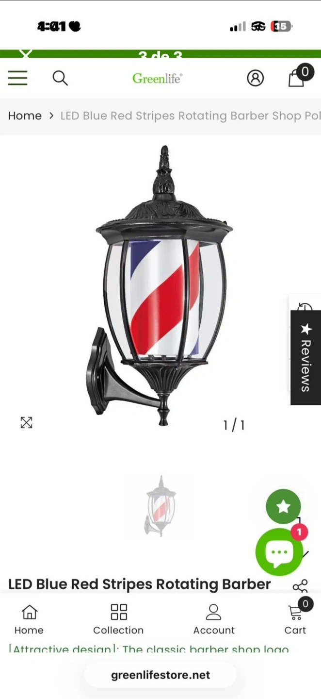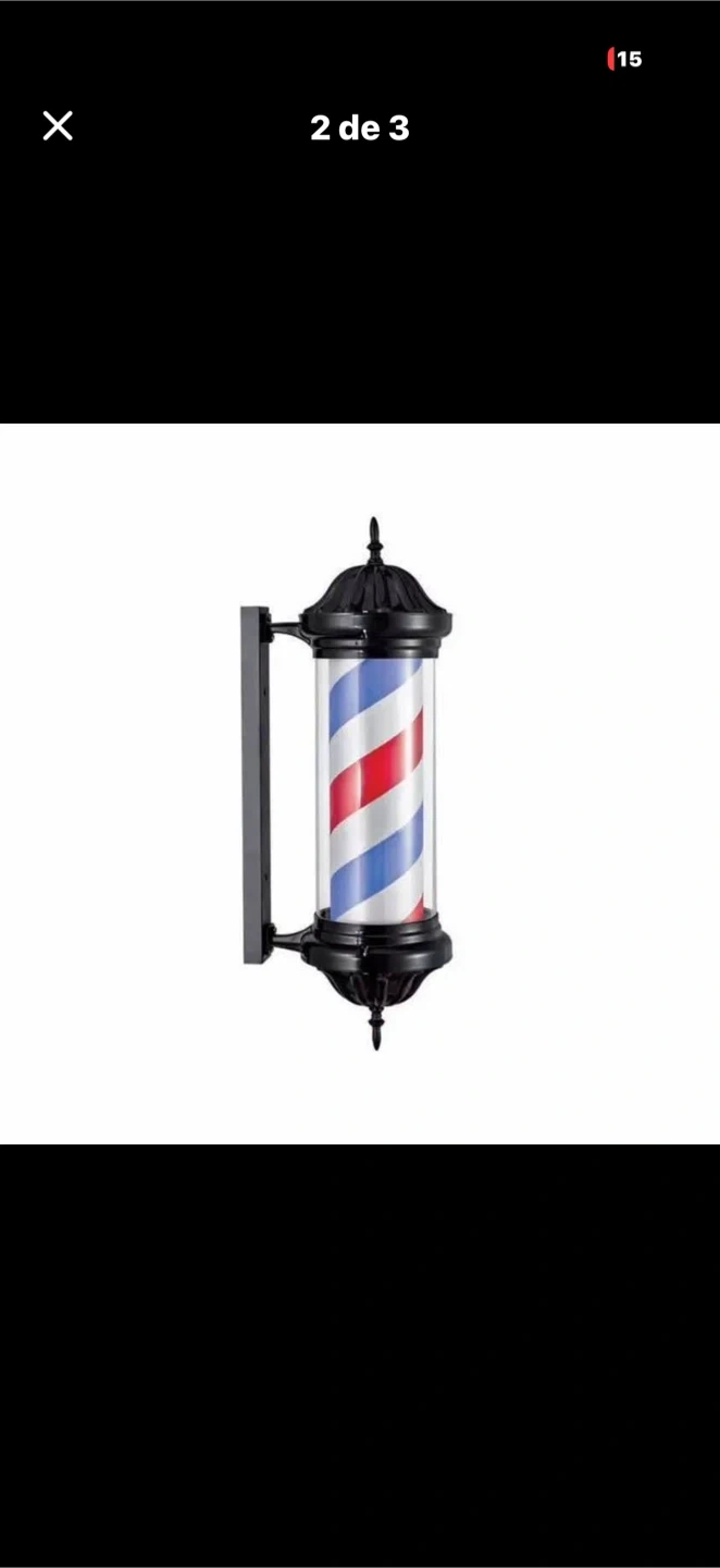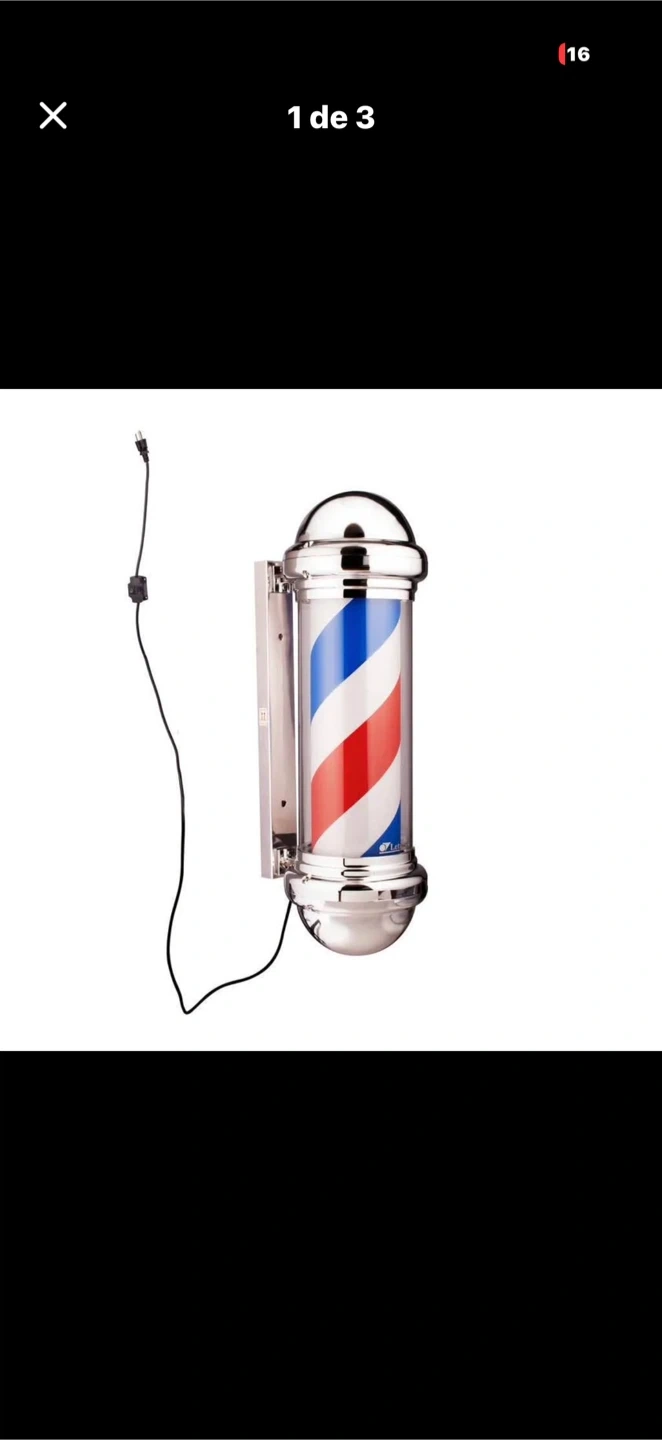 Classic red, white, and blue striped barber pole with LED lights. Wall-mounted design with a rotating feature. Includes power cord.