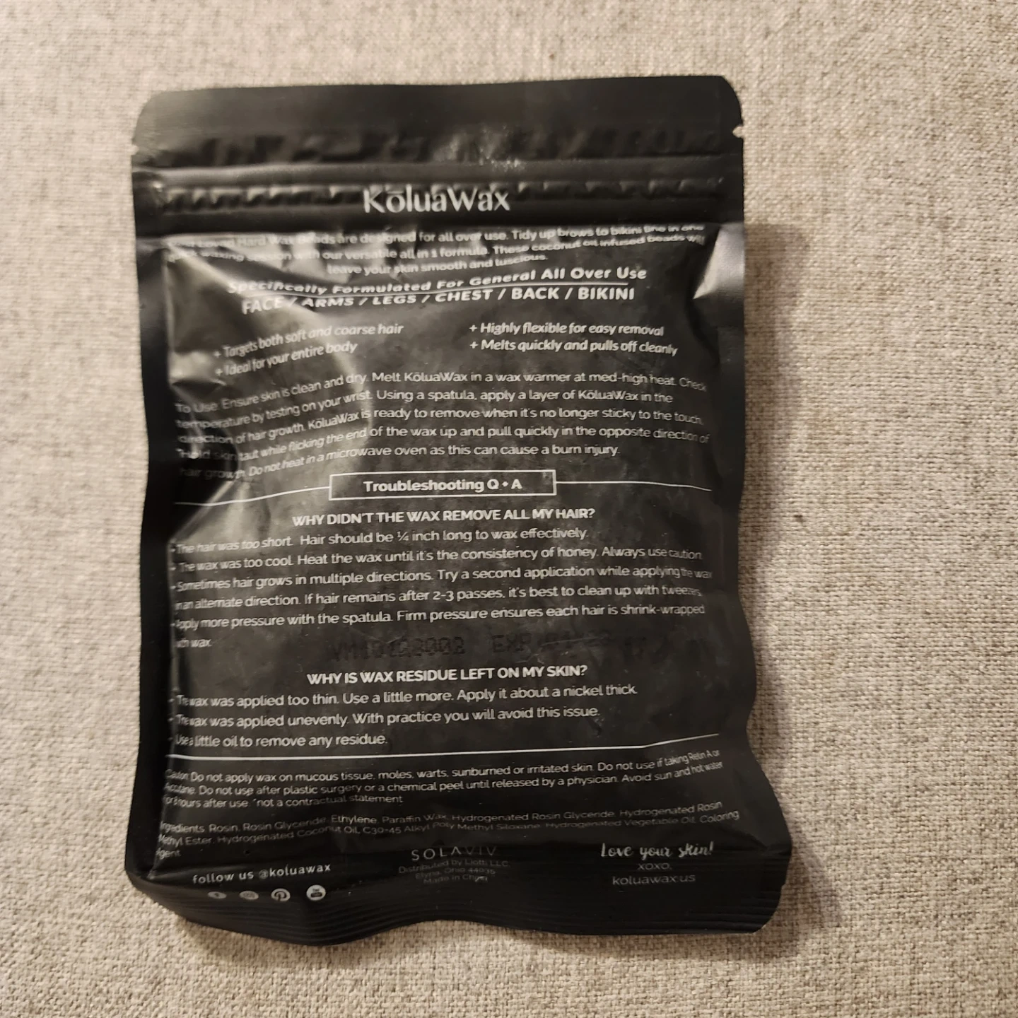 Koluawax hard wax beads for smooth hair removal. This is the Dragon Fruit + Hibiscus scent, packaged at 3.5 oz. It's formulated for all-over use. This wax is highly flexible for easy removal and pulls off cleanly!