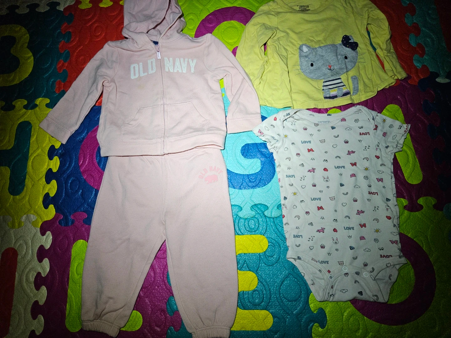 This Old Navy set includes a pink zip-up hoodie and matching pants. Both are size 18-24 months. Soft fleece material. Great for active play! Clothes for toddler girl