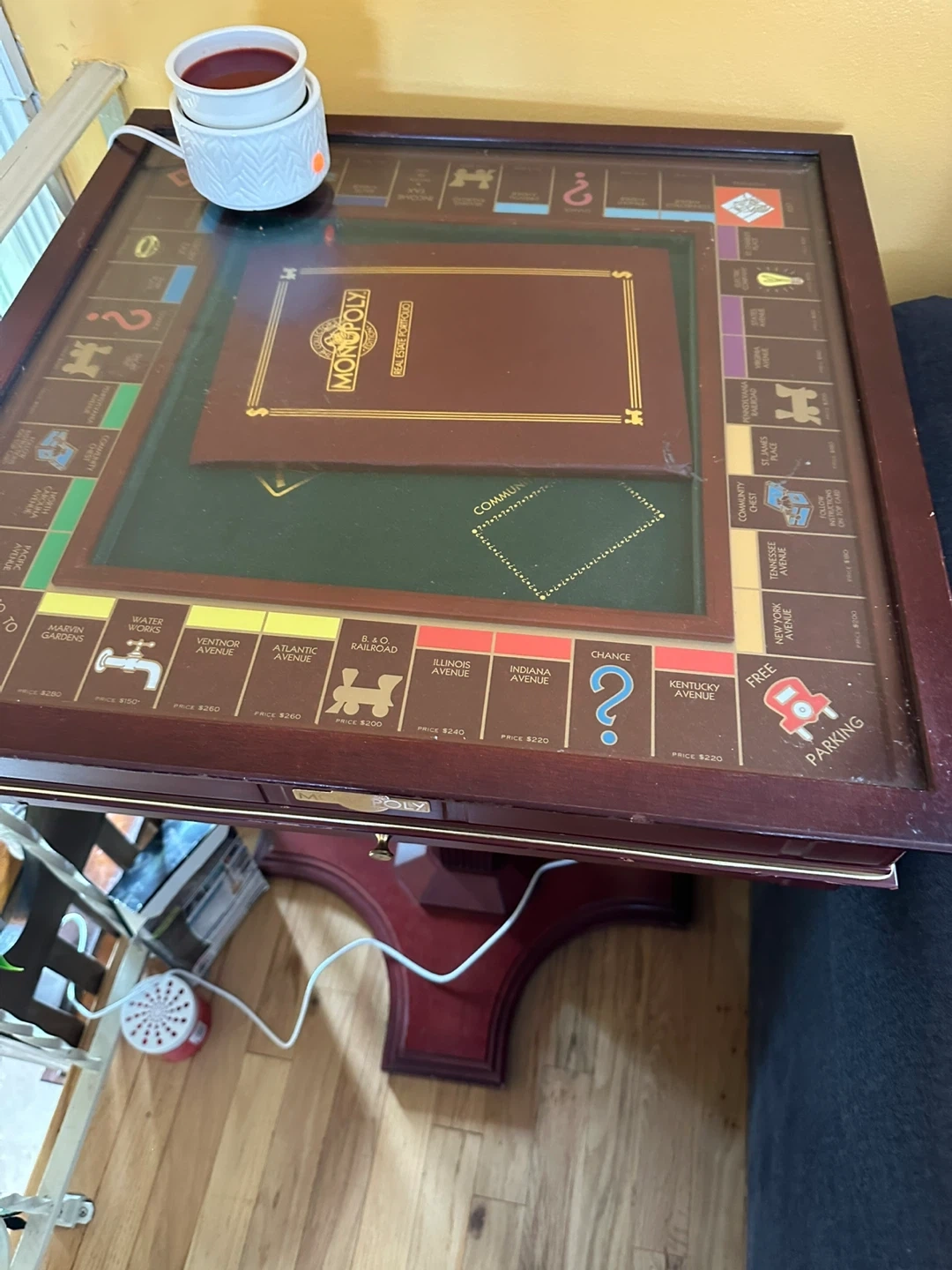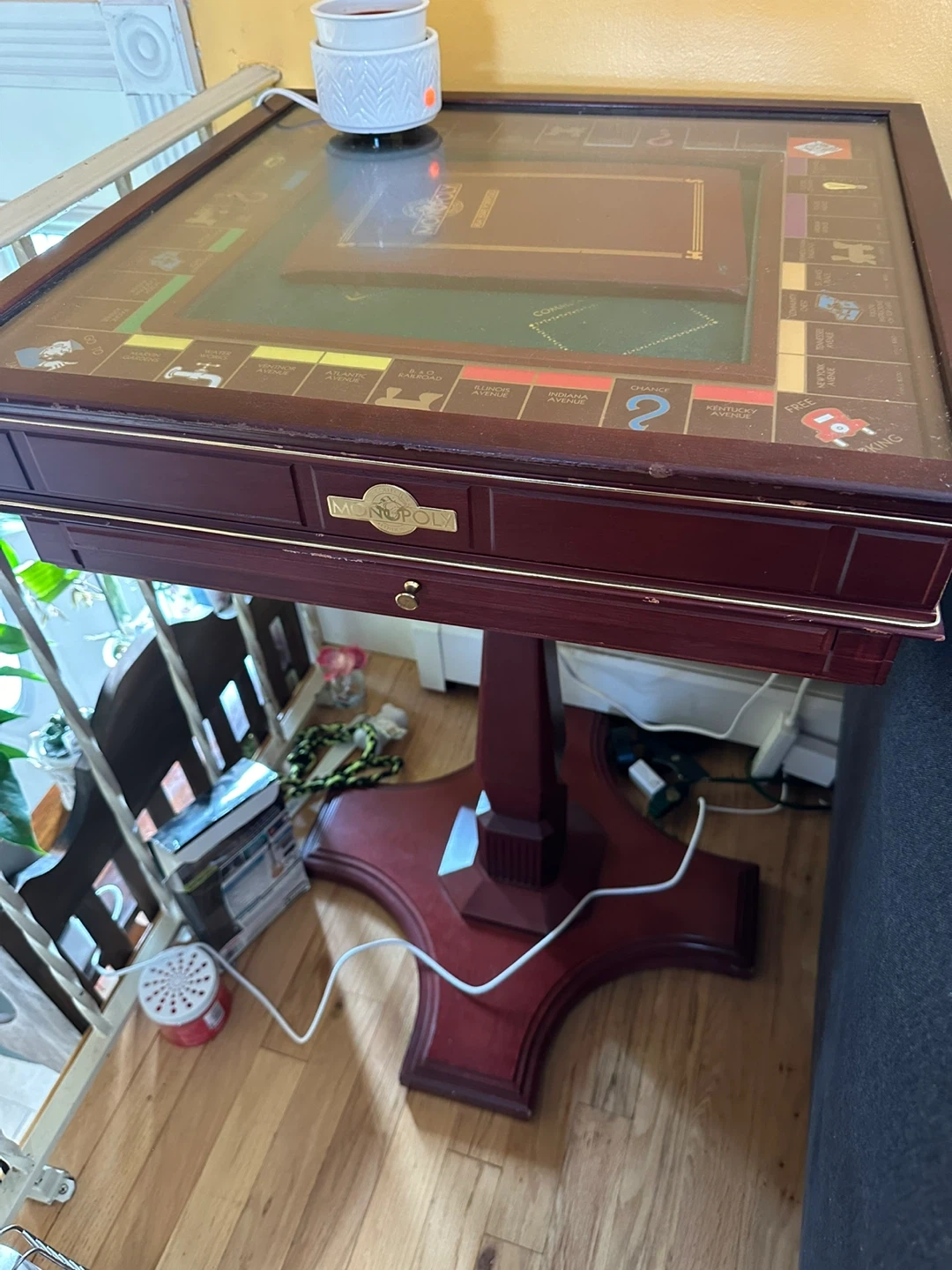 Buy & SellMonopoly tableMonopoly table$162Monopoly table Estate Portfolio game table. It features a glass top with the Monopoly board integrated.WHERE TO MEETCheck LocationView MapSELLERverifiedPriscillaNorth Massapequa700 reviews0 chats·0 favorites·40 viewsSEND CHAT TO SELLERHi Priscilla! I’m interested in your listing.Hi Priscilla! I’m interested in your listing.Get the Karrot app to chatSign In to chat