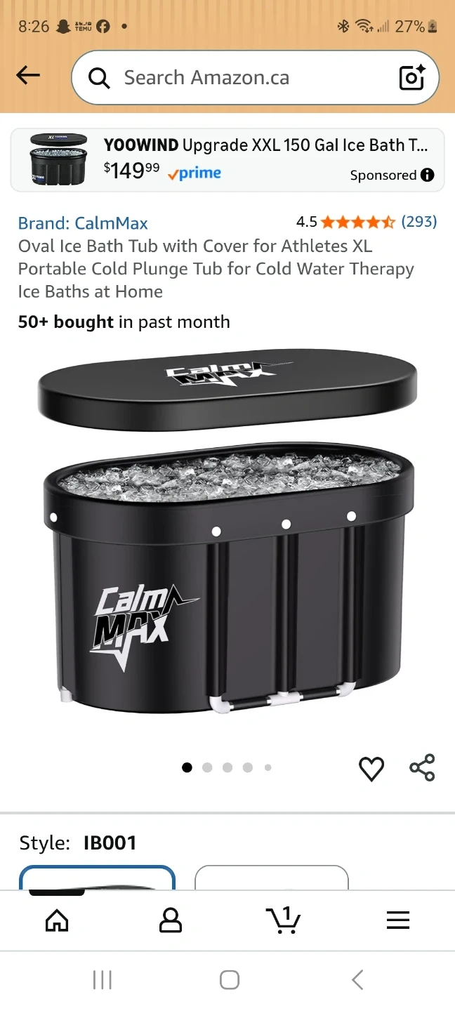 This is a CalmMax Oval Ice Bath Tub. It's an XXL size portable plunge tub for cold water therapy. It includes a cover and is suitable for home ice baths.