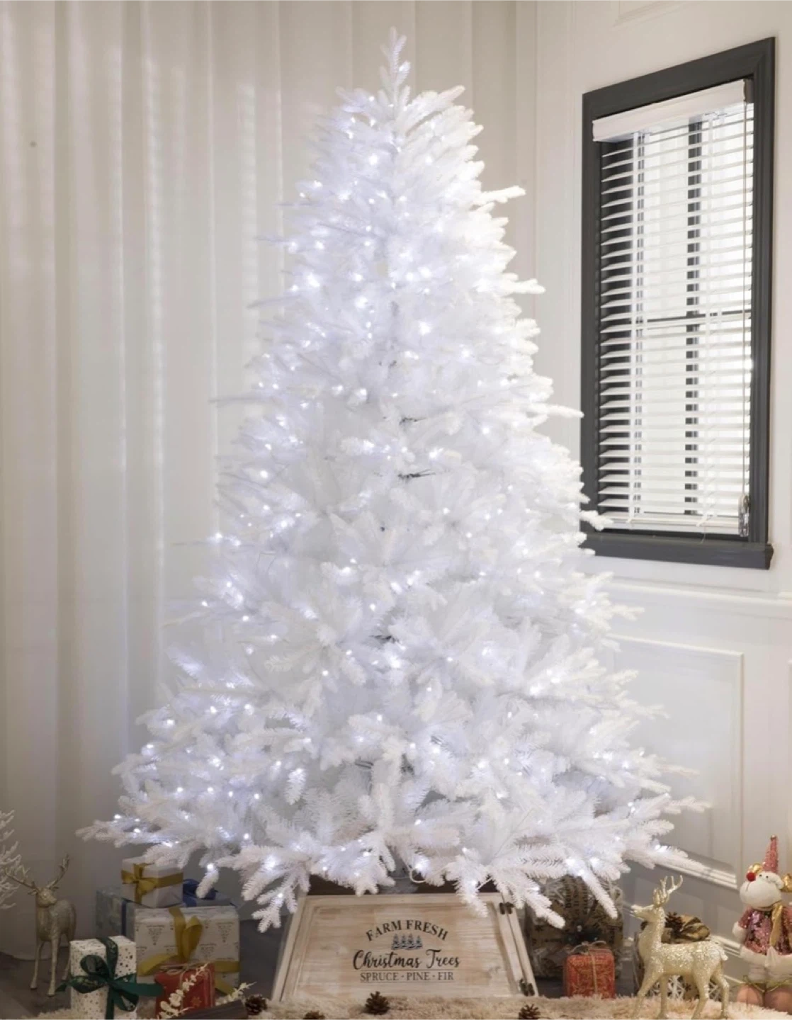 6FT White Christmas Tree Realistic Lush Xmas Tree with 792 PVC & PET Branch Tips Hinged Structure & Metal Base Artificial Iridescent Pine Tree for Festival Home has a quite a few different settings on the light brand new in the box price is firm