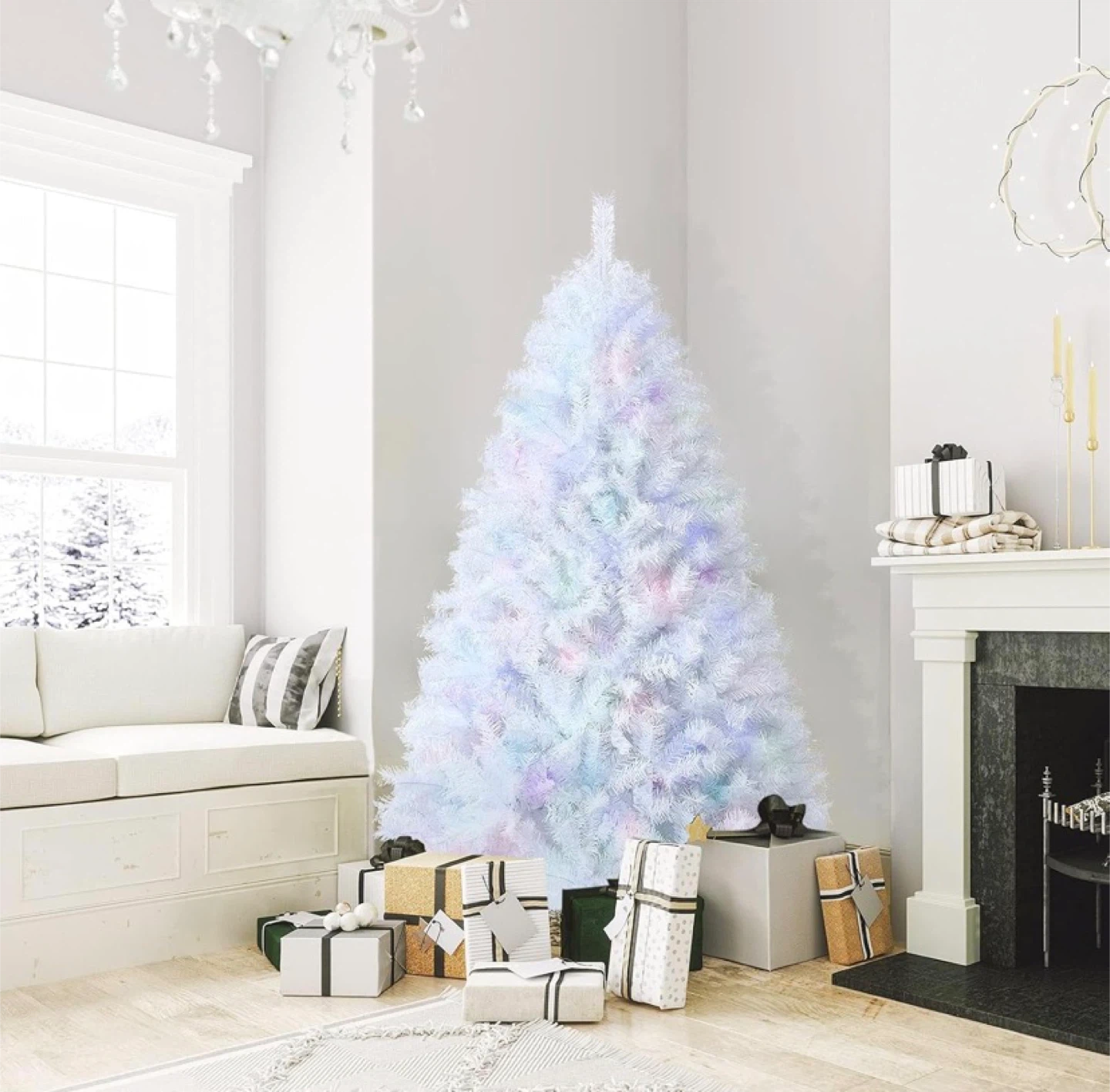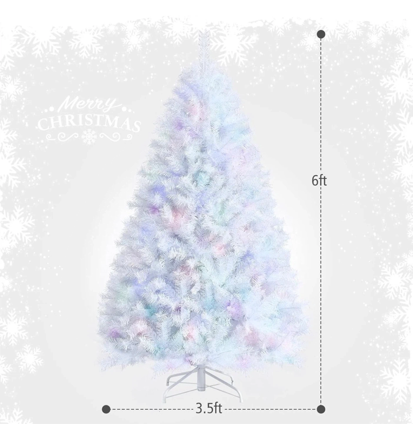 6FT White Christmas Tree Realistic Lush Xmas Tree with 792 PVC & PET Branch Tips Hinged Structure & Metal Base Artificial Iridescent Pine Tree for Festival Home has a quite a few different settings on the light brand new in the box price is firm