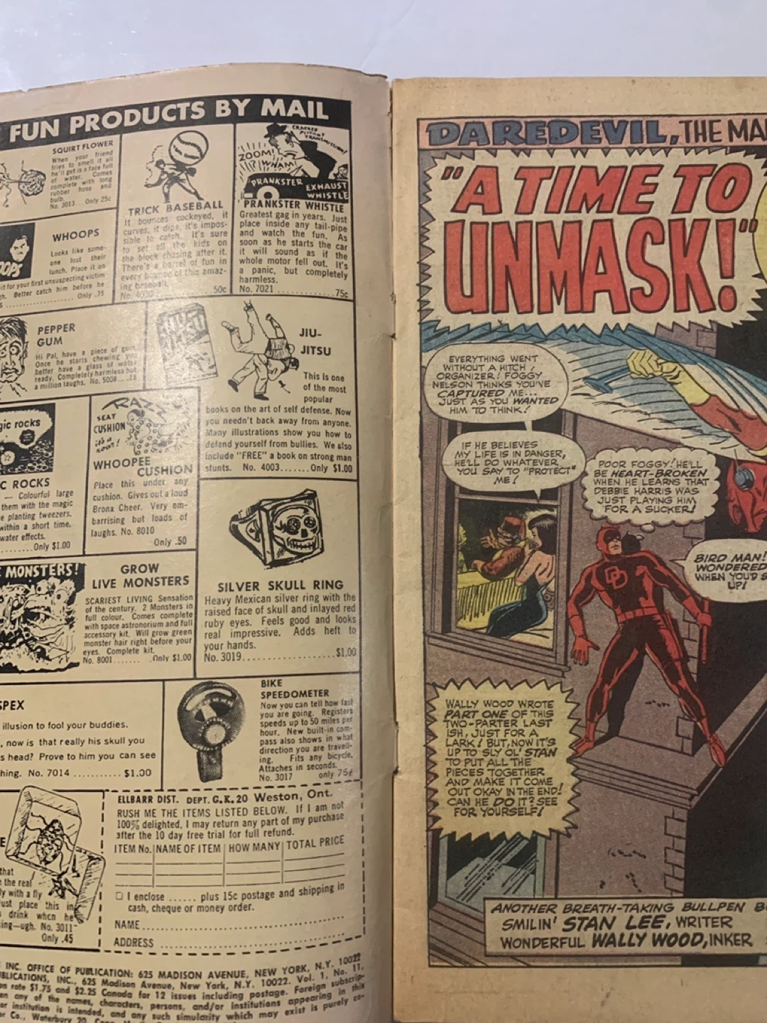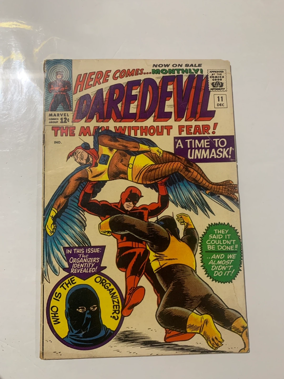 This is Daredevil issue #11, titled "A Time to Unmask!". It features the organizer's identity revealed. The comic is from Marvel Comics, published in December 1965. This comic is a great addition for any collector!