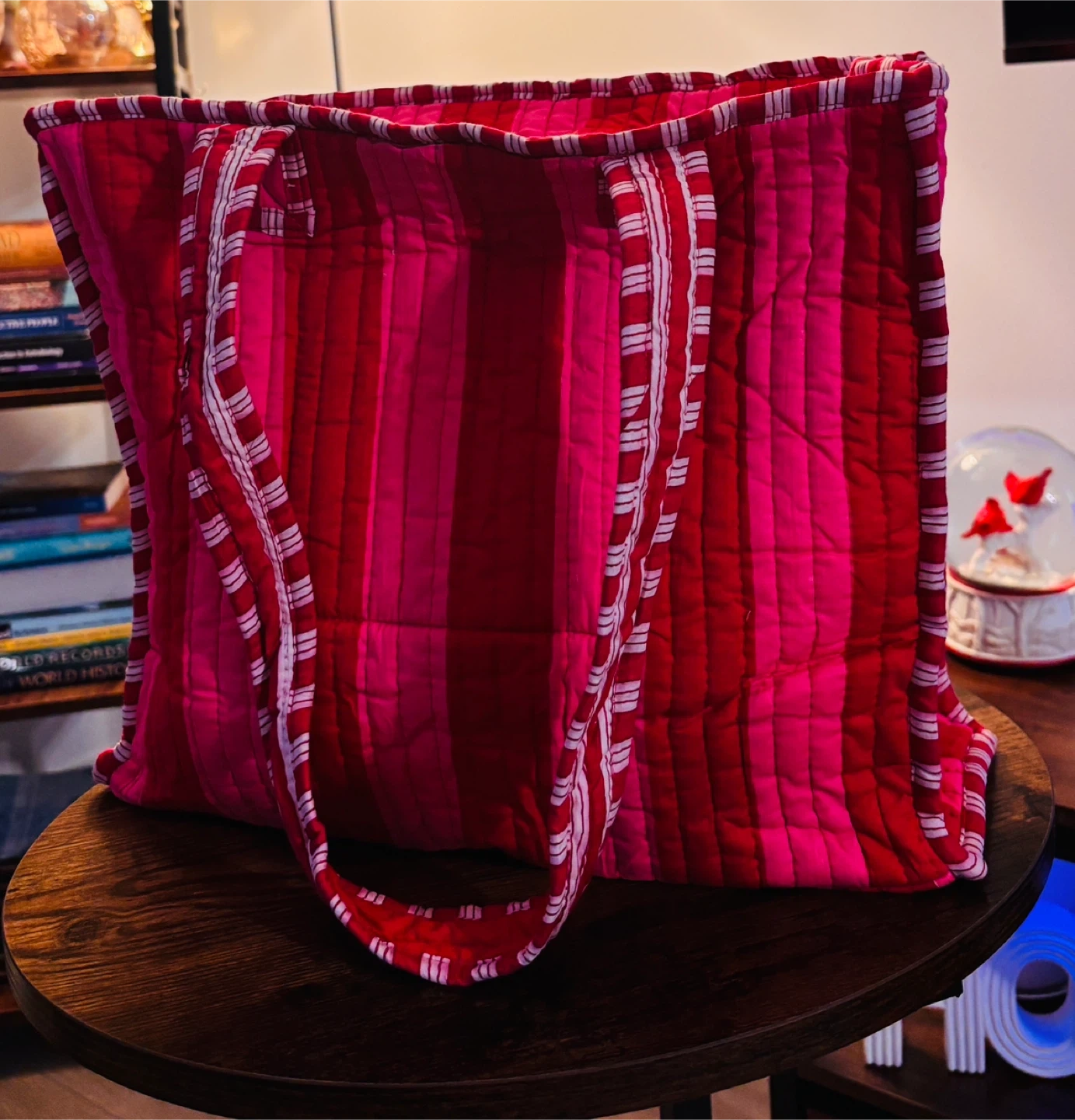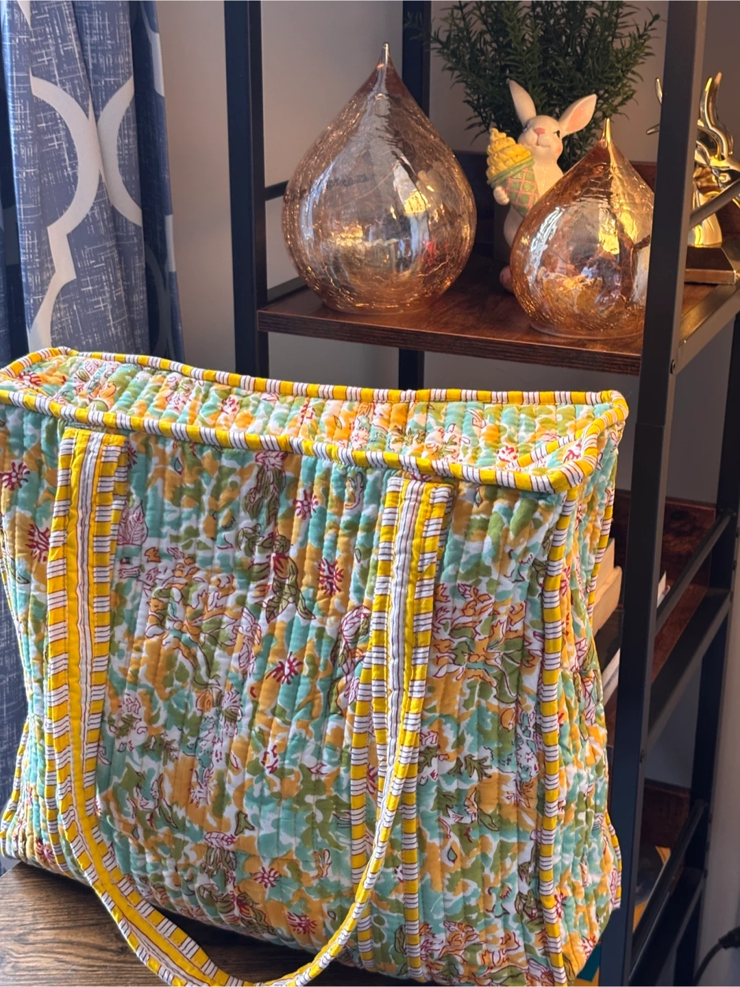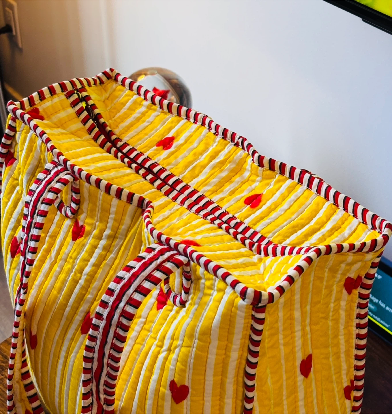 Quilted tote bag featuring a playful strawberry print and many more vibrant colours. It's perfect for carrying your essentials. Fabric material. 100 cotton , very soft to touch with inner pocket and zipper closure.