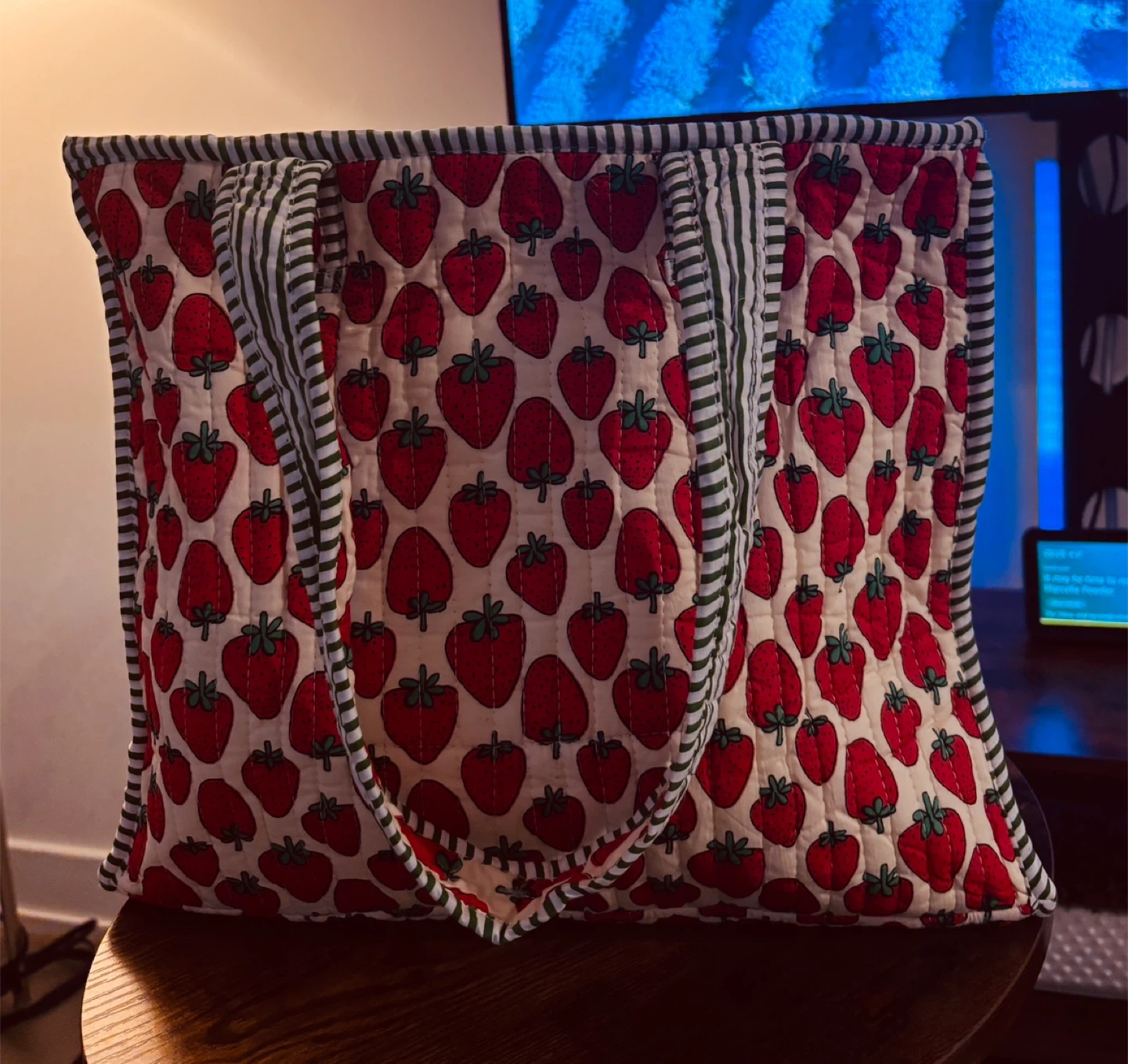 Quilted Tote Bag - Strawberry Print