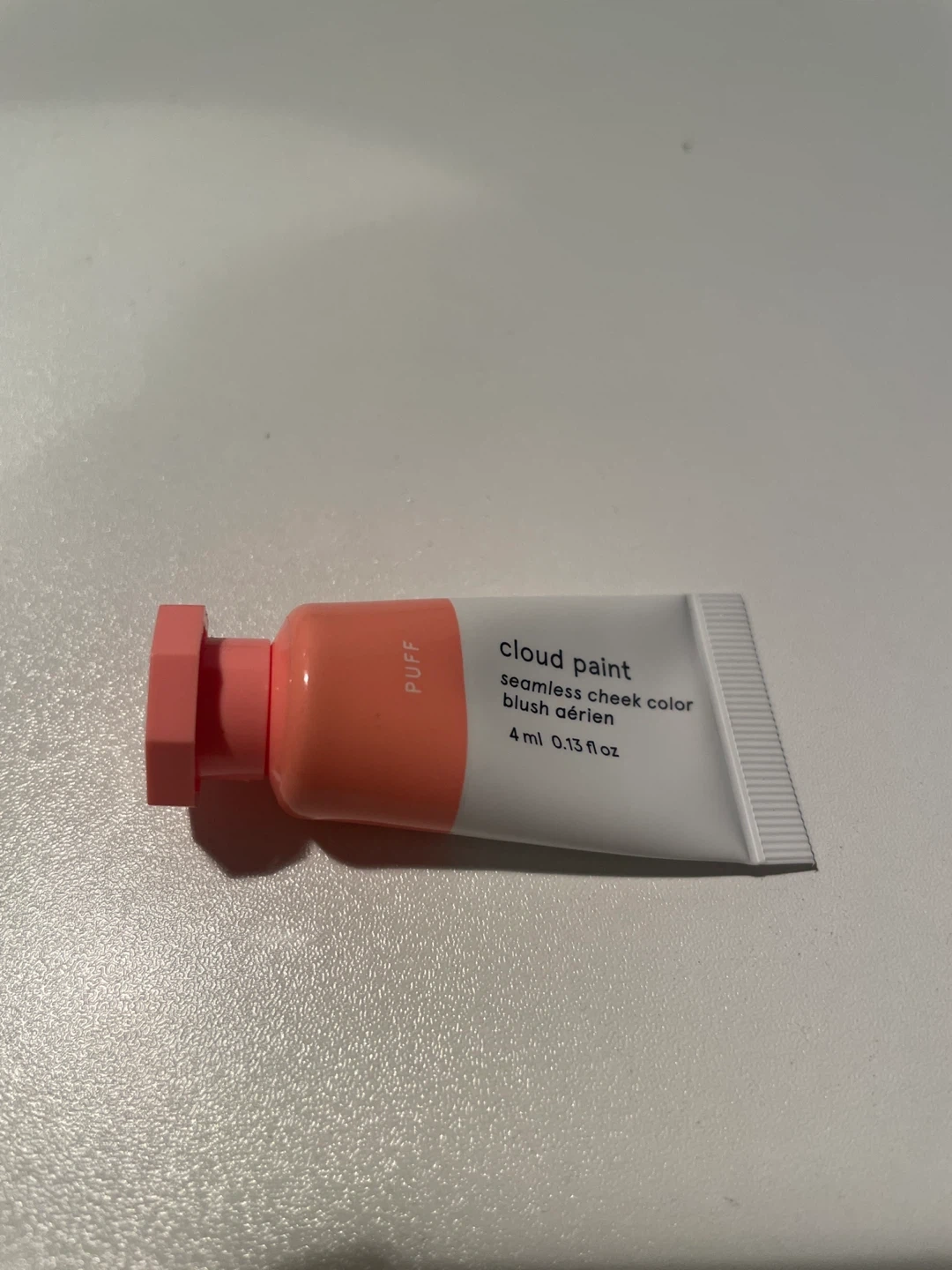 This is a Glossier Cloud Paint seamless cheek color in the shade Puff. It's a cream blush that blends easily for a natural flush. 4 ml or 0.13 fl oz.