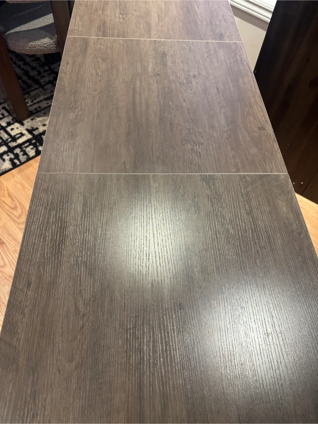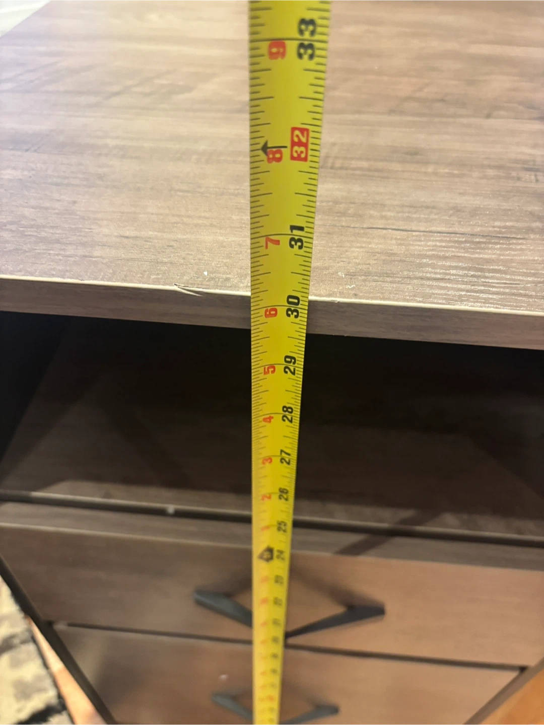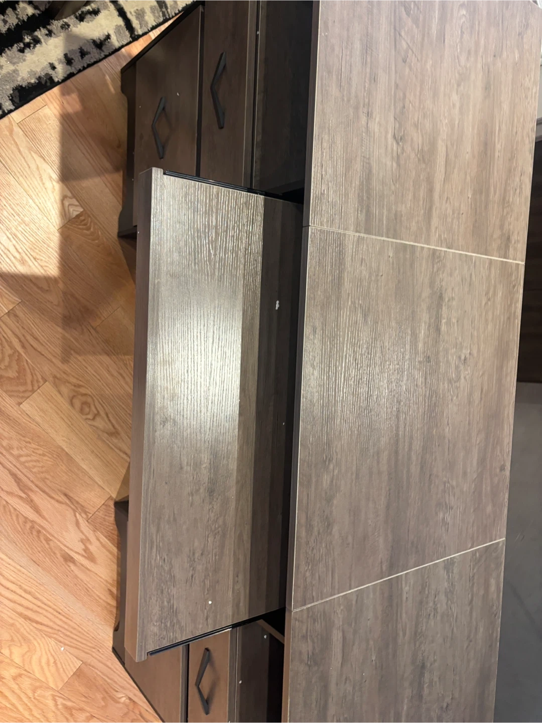 Dark wood computer desk. Includes a pull-out keyboard tray.Features four drawers for storage. Manufactured wood material.