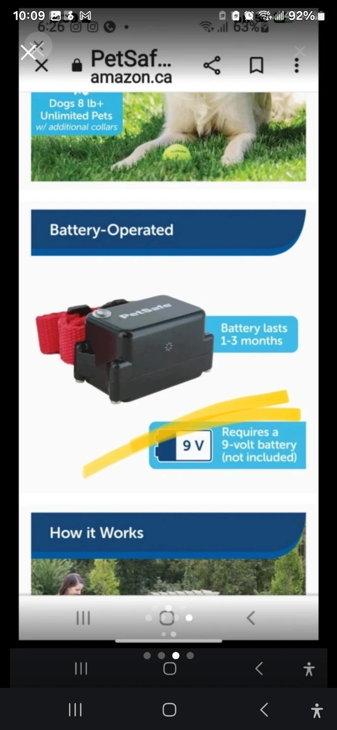 This is a PetSafe electronic dog collar. It's battery-operated and requires a 9-volt battery, which is not included. The battery lasts 1-3 months.