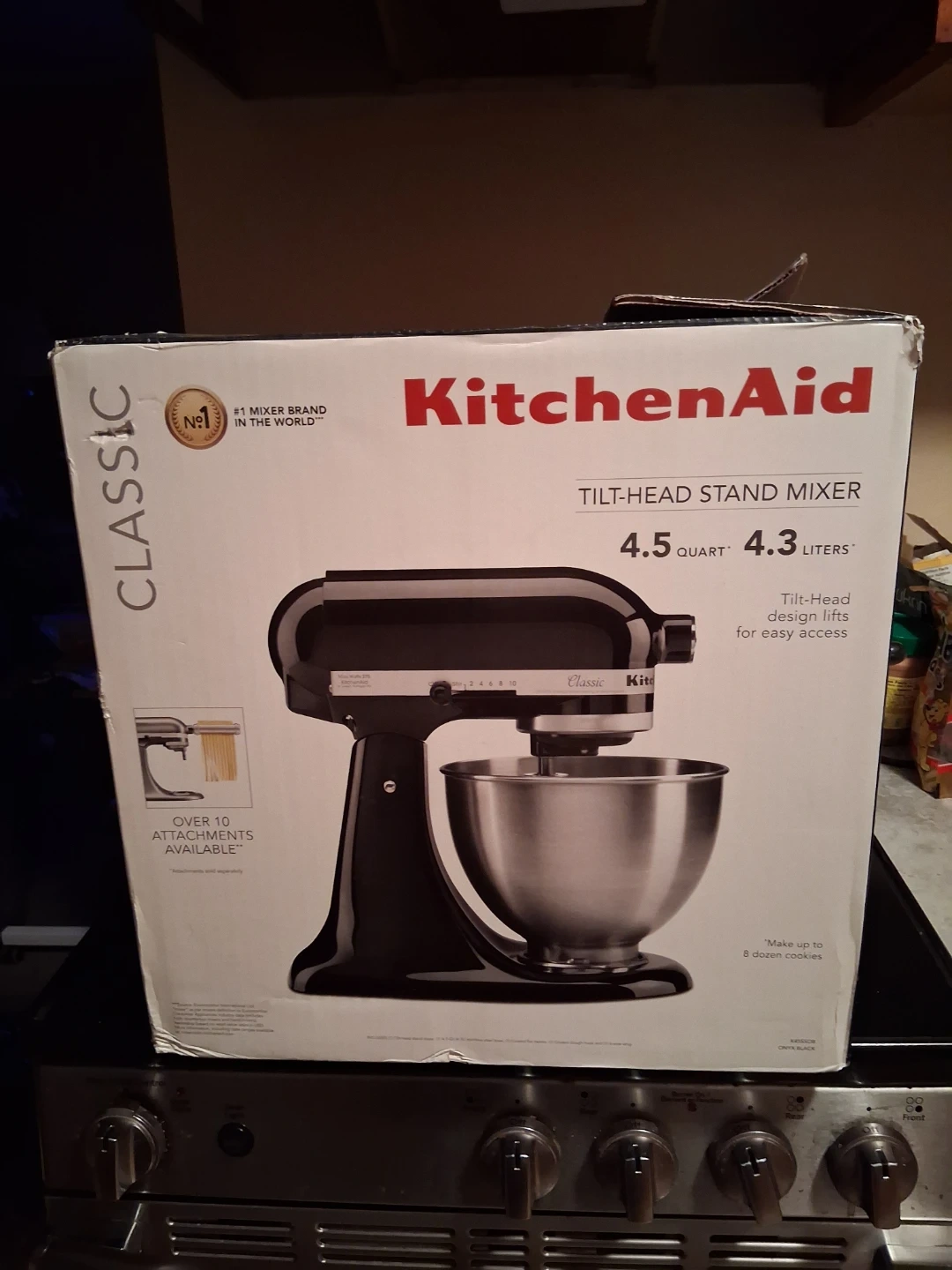 KitchenAid 4.5 quart mixer, tilt head. Got it for Christmas and used once. It's to heavy to lift for me, wanted a slurpee machine instead.