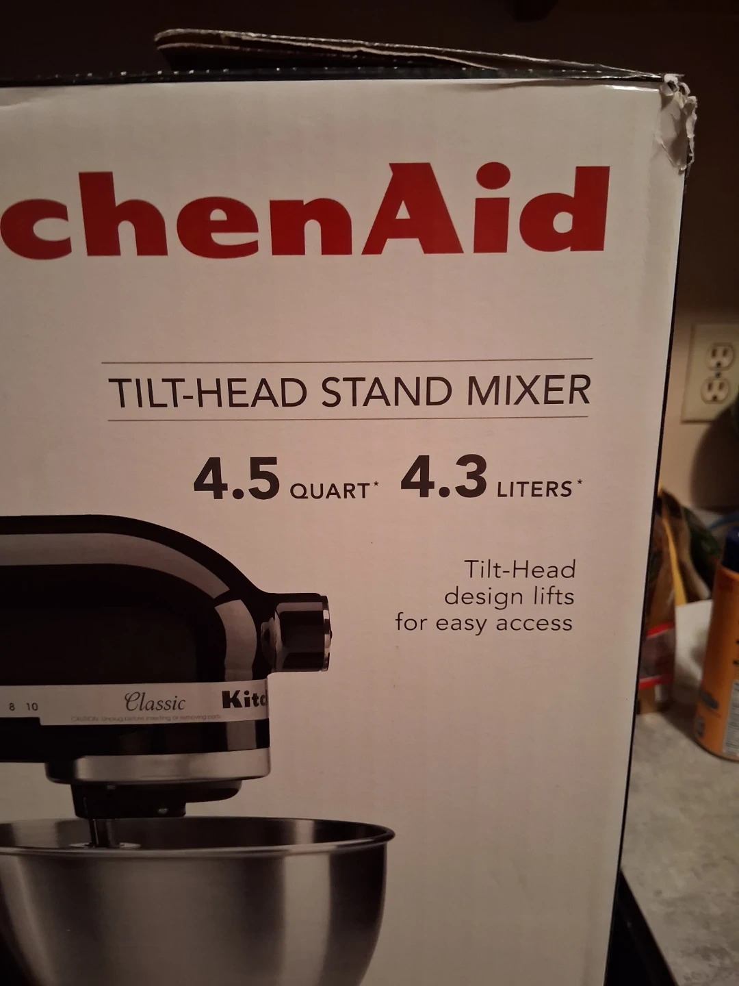 KitchenAid 4.5 quart mixer, tilt head. Got it for Christmas and used once. It's to heavy to lift for me, wanted a slurpee machine instead.