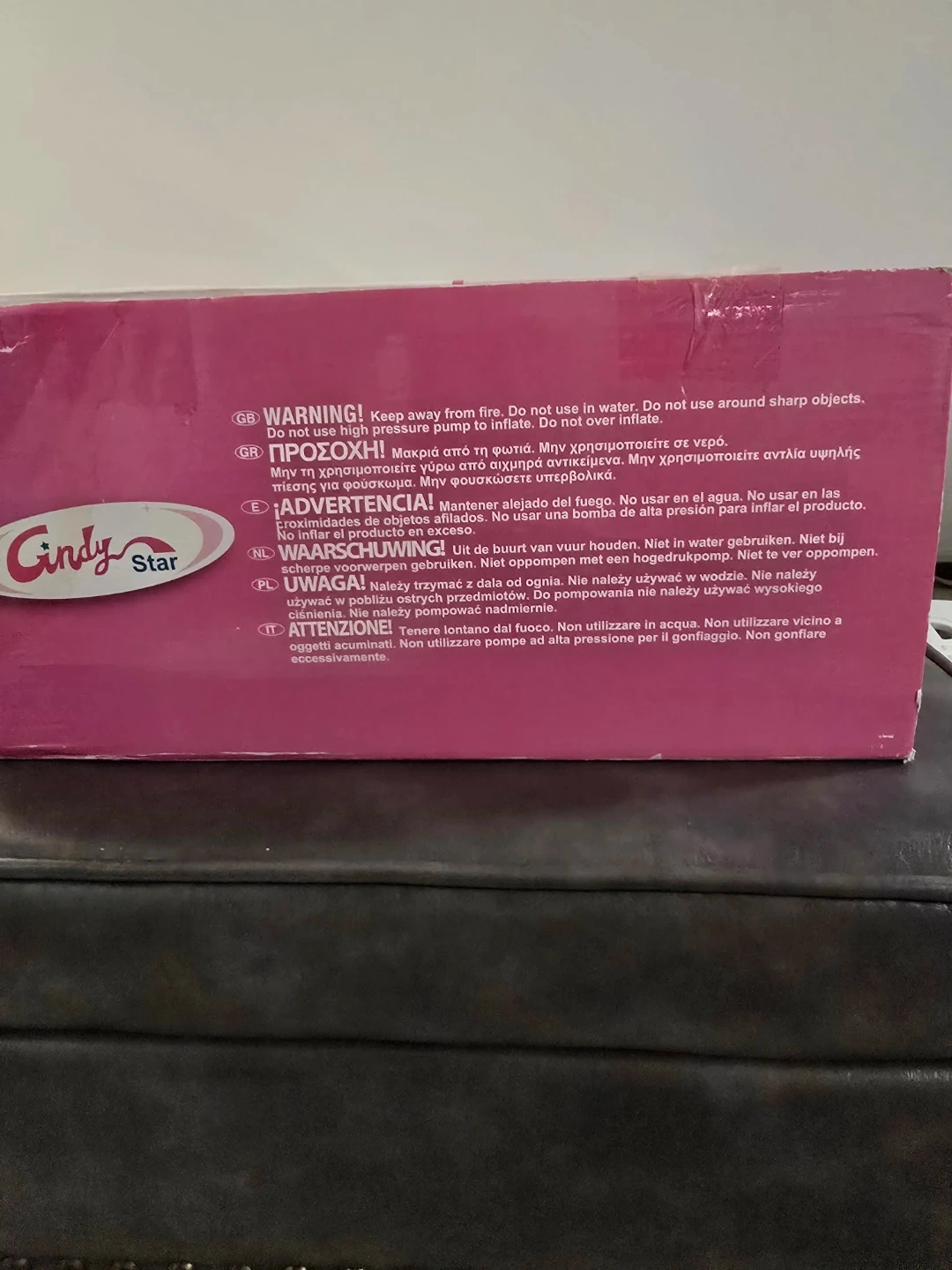 This is a Cindy Star inflatable toddler bed. It's perfect for sleepovers or travel. Comes with a carry bag and a small pump.