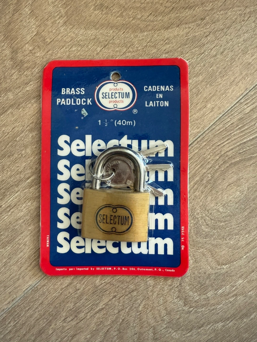 Buy & SellSelectum Brass Padlock 1 1/2 inchSelectum Brass Padlock 1 1/2 inch$5This is a Selectum brass padlock. It's 1 1/2 inches (40mm) and comes with keys. Made in Taiwan.ConditionNewWHERE TO MEET82 Dalhousie StView MapSELLERsophieChurch Yonge Corridor90874 reviews0 chats·0 favorites·2 viewsSEND CHAT TO SELLERHi sophie! I’m interested in your listing.Hi sophie! I’m interested in your listing.Get the Karrot app to chatSign In to chat