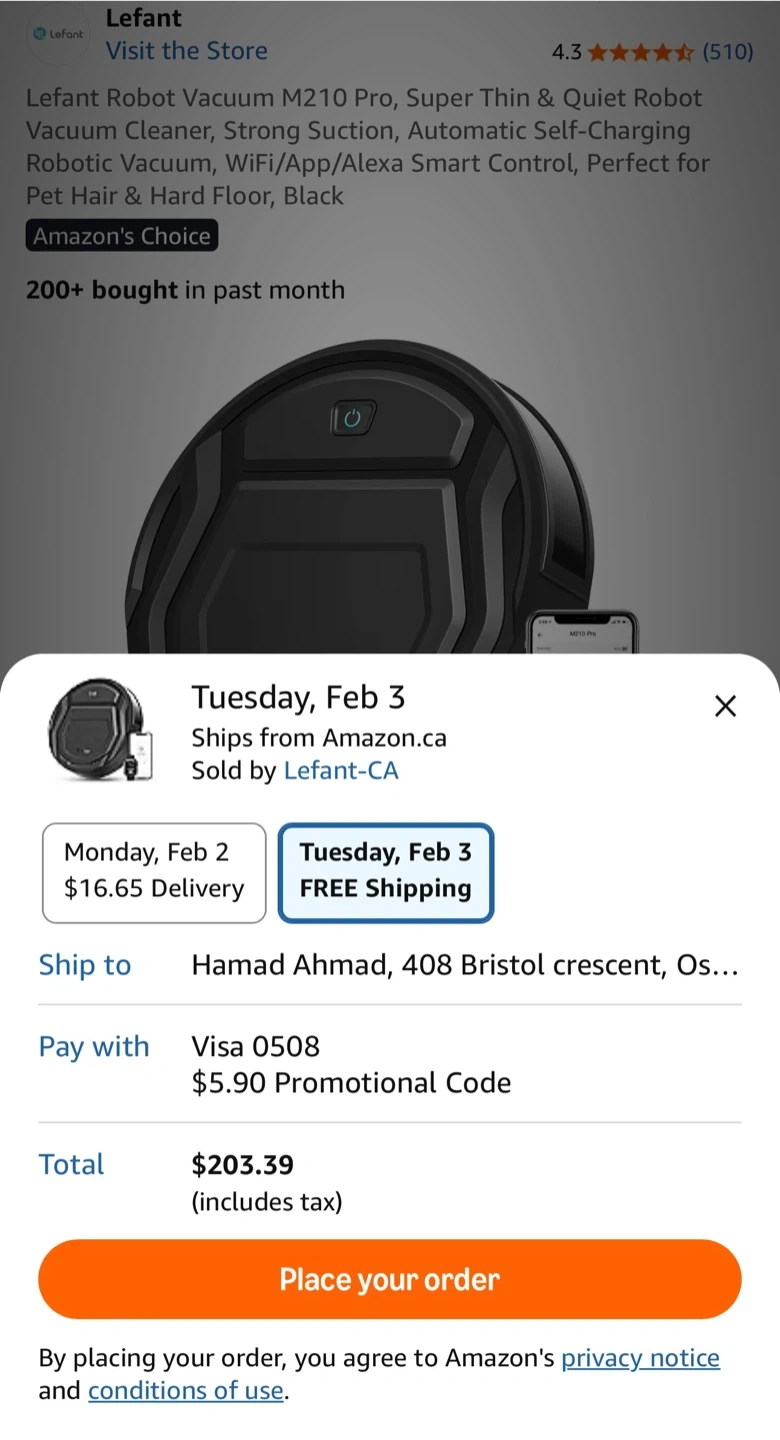Lefant M210 Pro Robot Vacuum Cleaner - Black